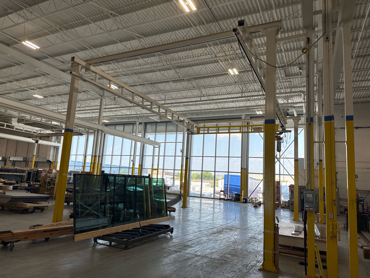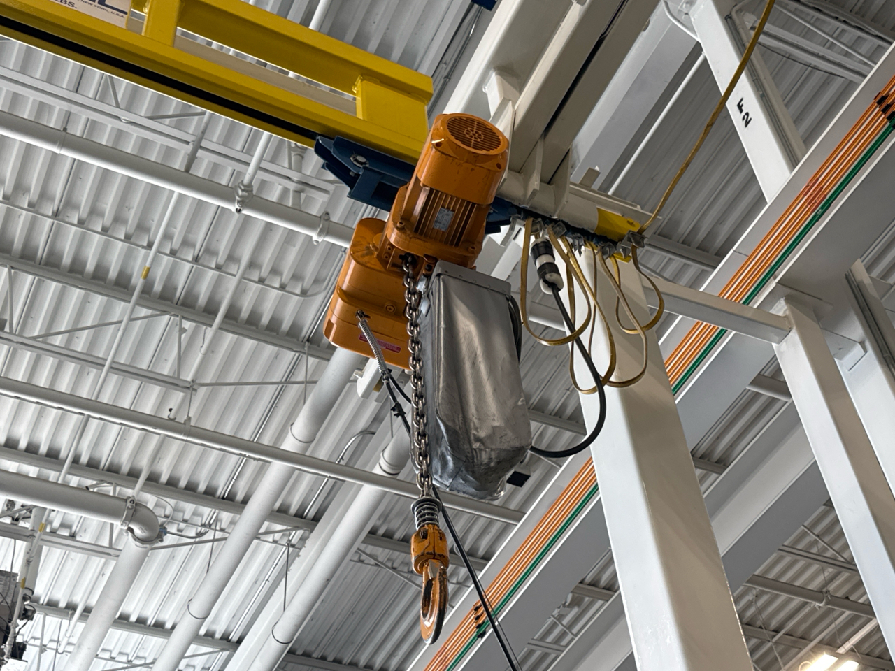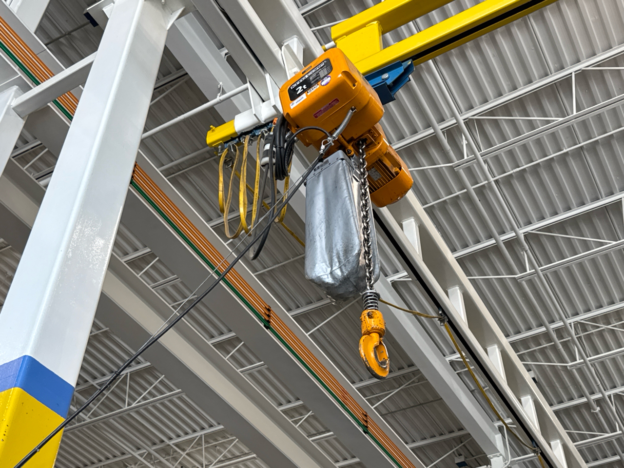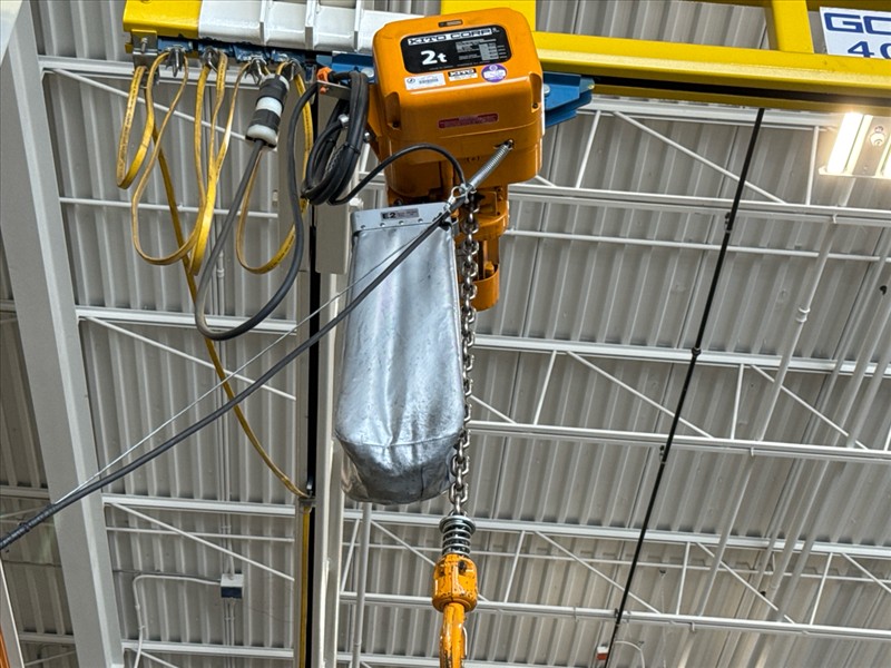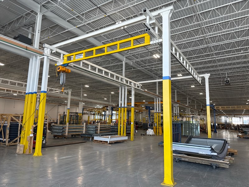 Gorbel Free Standing Hoists, mod. , 4000 lbs. cap., single-girder, 20 ft. span, 30 ft. runway w/ Kito 2-ton electric chain hoist [Loc. Assembly]