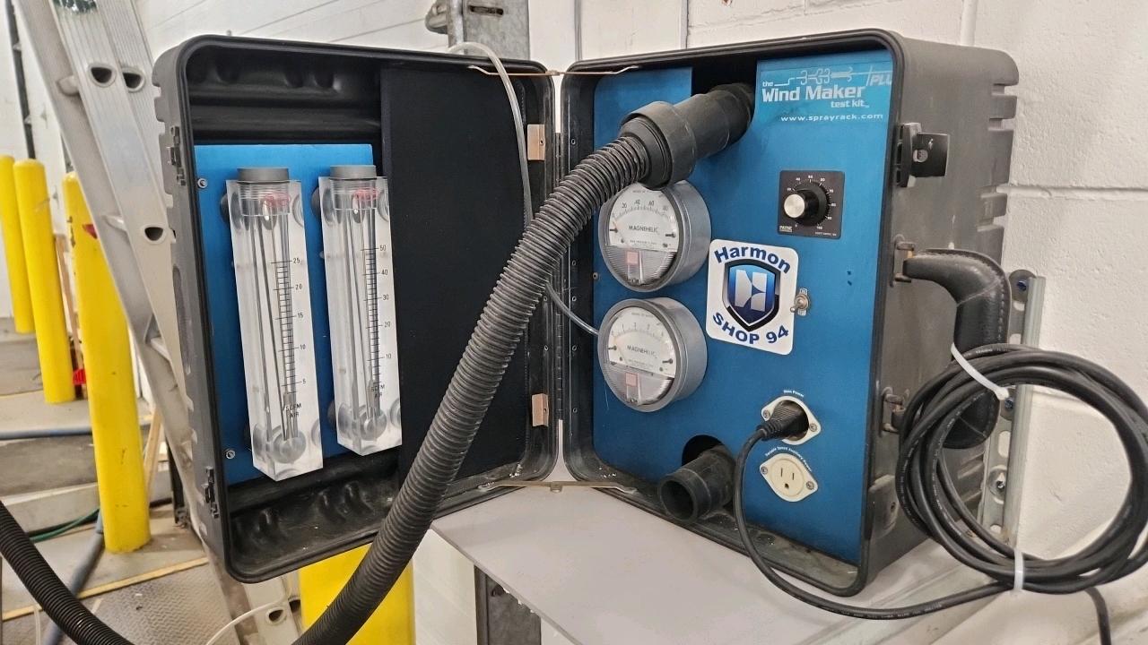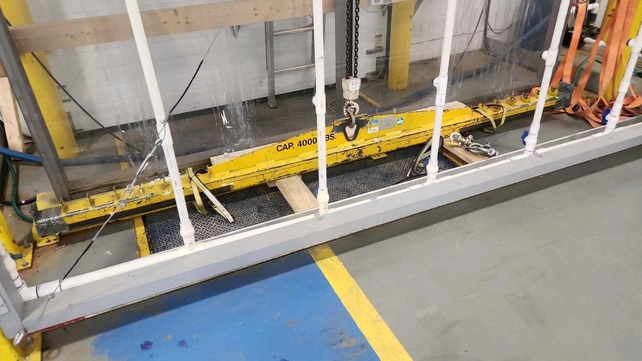 Spray Rack panel test station, mod. The Wind Maker Plus Test Kit w/ Coffing 1.5-ton elec. Chain hoist, 500 gal. poly tank and 1 hp pump [Loc. --]