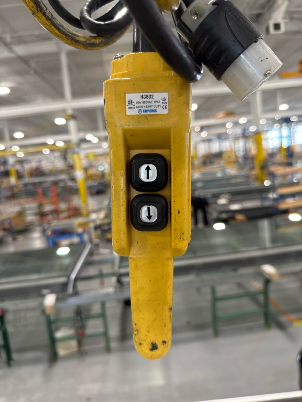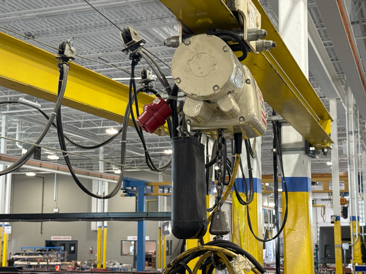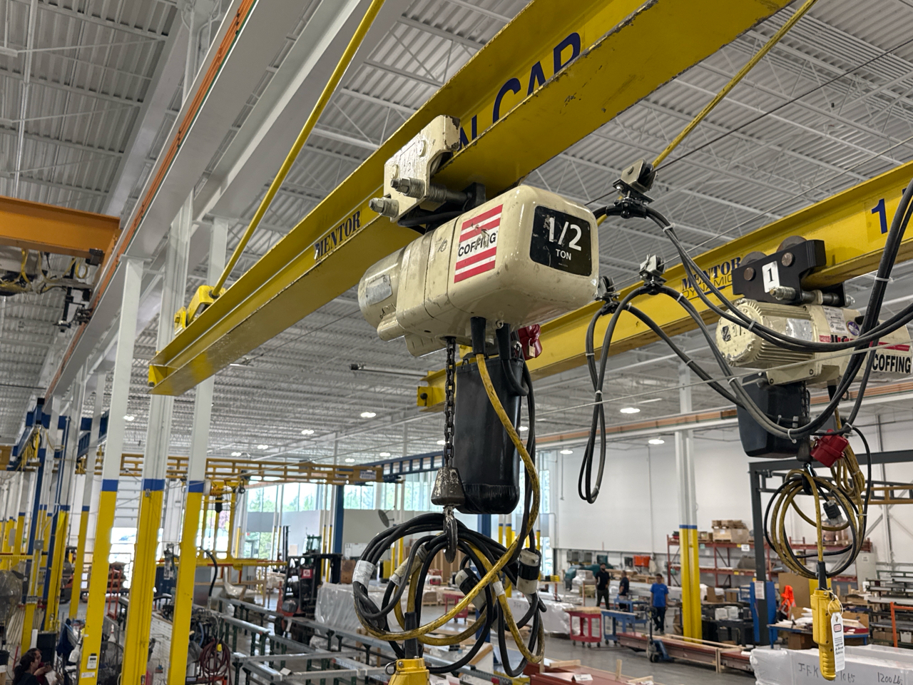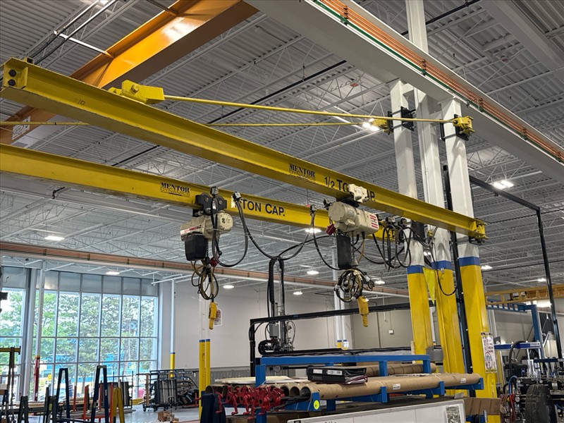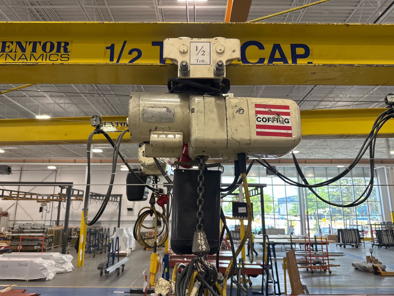 Mentor Dynamics Post-Mounted Jib Crane, mod. , 1/2-ton. cap., 18 ft. span w/ Coffing 1/2-ton electric chain hoist (incl. mounting bracket) [Loc. Assembly]