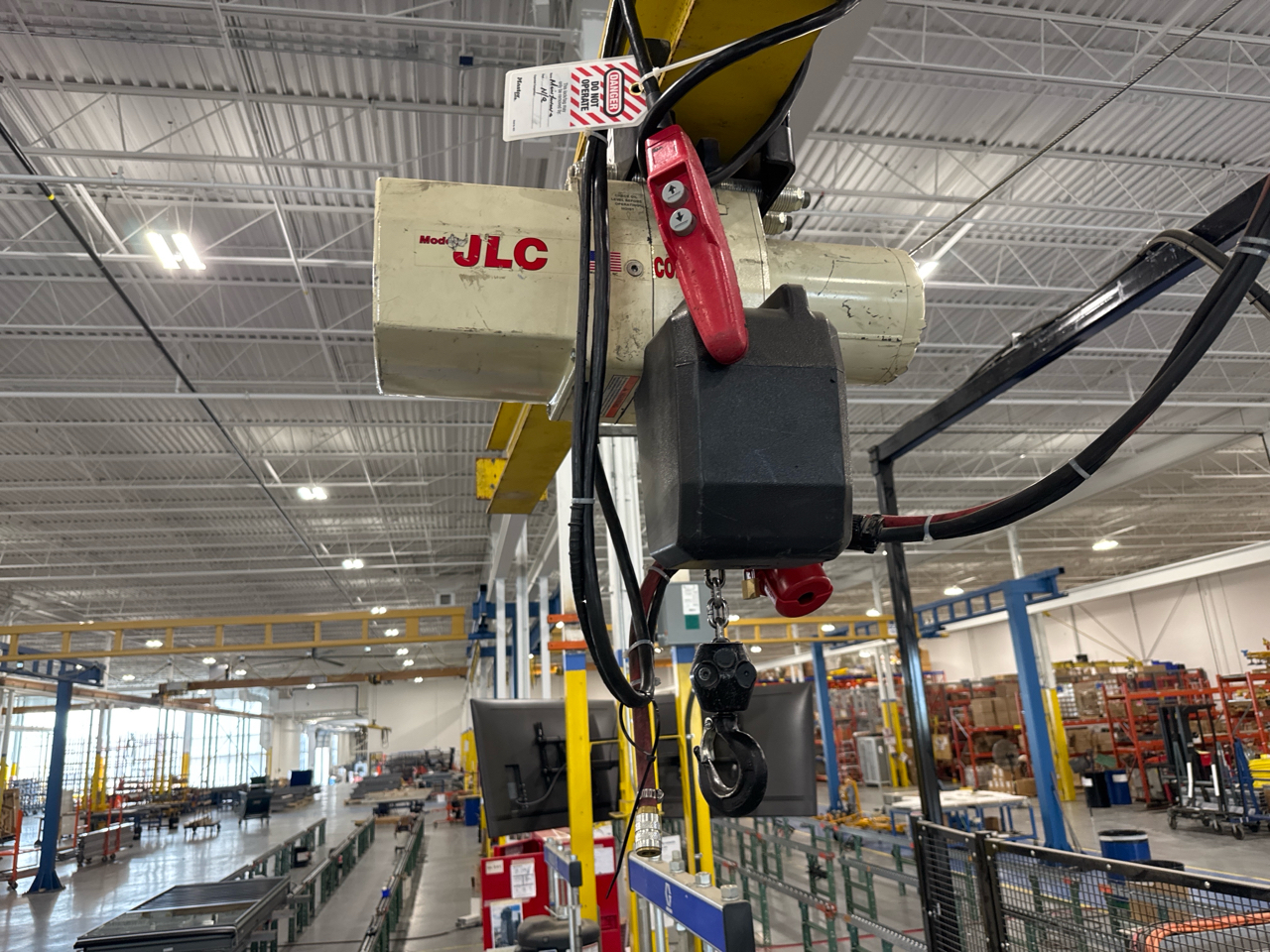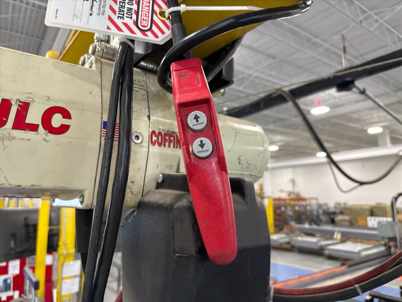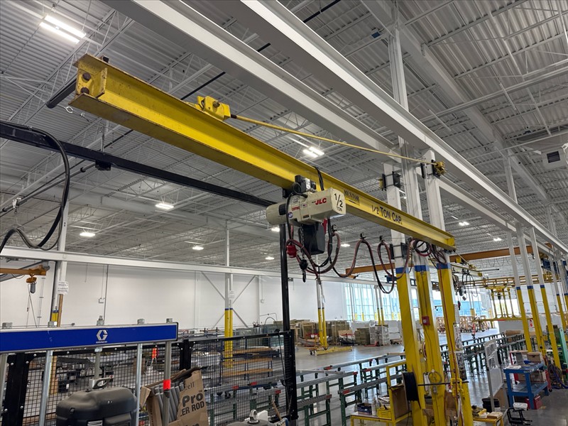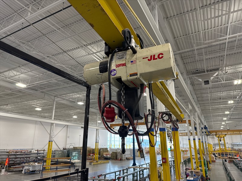 Mentor Dynamics Post-Mounted Jib Crane, mod. , 1/2-ton. cap., 18 ft. span w/ Coffing 1/2-ton electric chain hoist (incl. mounting bracket) [Loc. Assembly]
