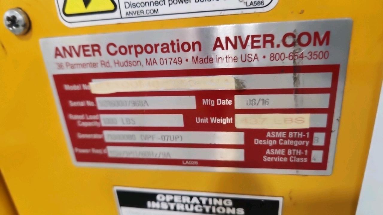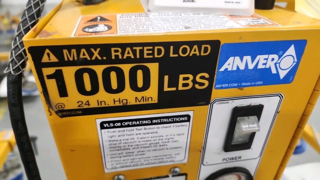 Anver Center-Load Vacuum Lifter, mod. ET1000M8-150-4/44, ser. no. SO160007968A (2016), 1000 lbs. cap., 16 ft. max. length, 6 ft. max. width, 3 cm max. thickness c/w vacuum generator and VLS-08 leak sensor [Loc. Assembly]