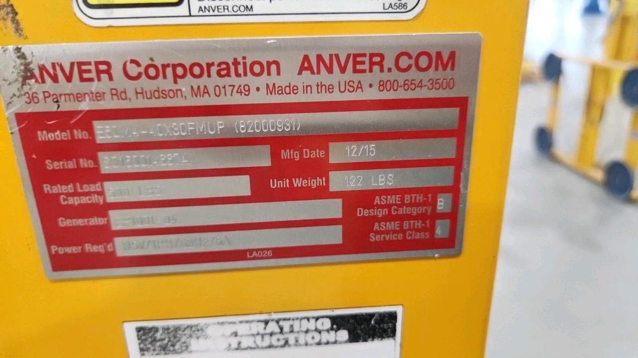 Anver Center-Load Vacuum Lifter, mod. 82000931 (E50M4-40X30FMUP), ser. no. SO09000793, 500 lbs. cap. [Loc. Assembly]