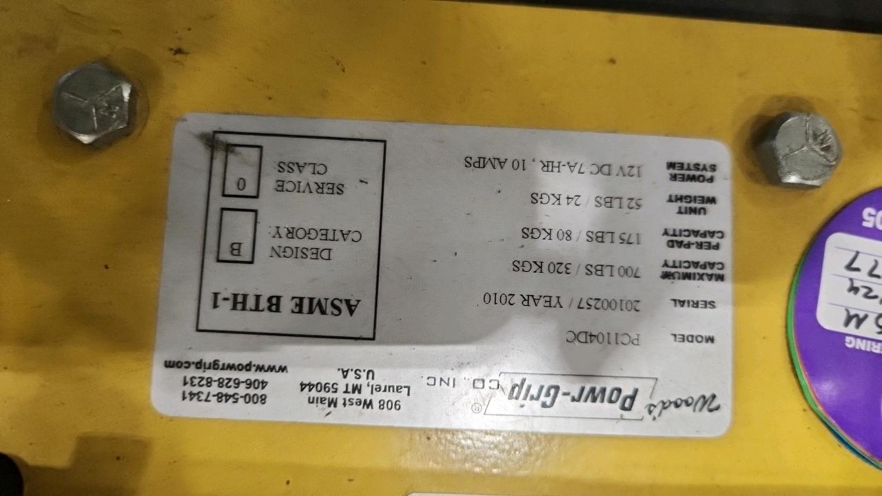 Wood's Pwr-Grip Center-Load Vacuum Lifter, mod. PC1104DC, ser. no. 20100257, 700 lbs. cap. [Loc. Assembly]