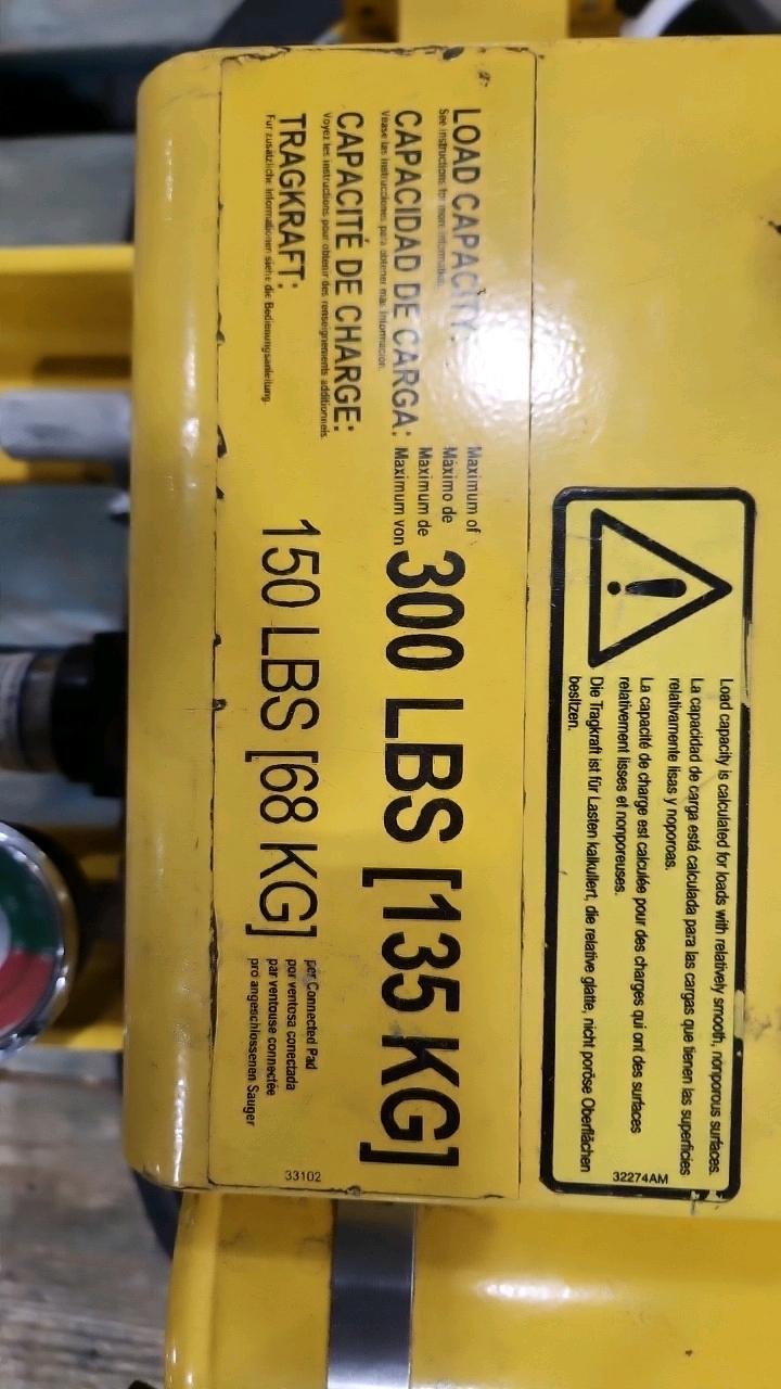 Wood's Pwr-Grip Center-Load Vacuum Lifter, mod. PC1104DC, ser. no. 20161971 (2016), 300 lbs. cap. [Loc. Assembly]