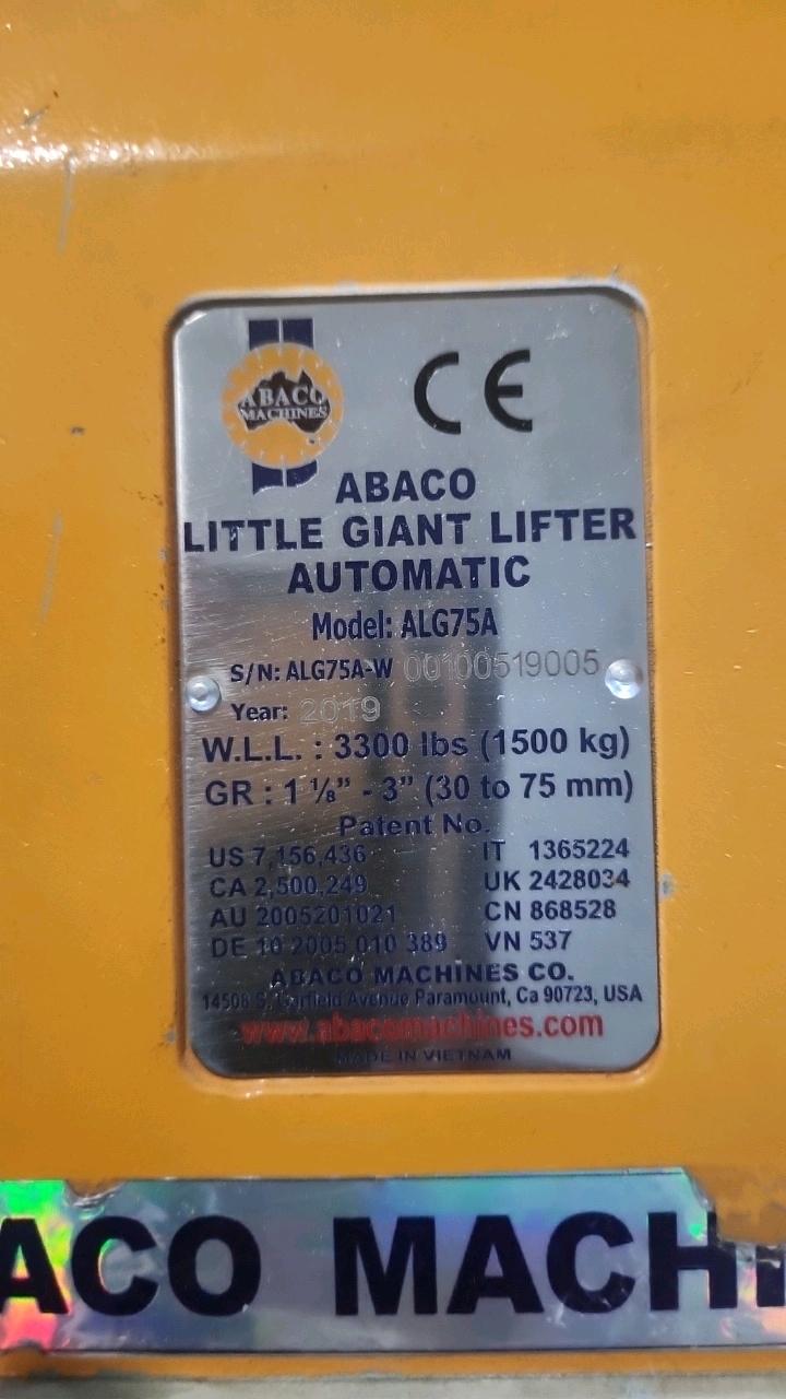 Abaco Little Giant automatic lifter, mod. ALG75A, 3300 lbs. cap., 30 - 75 mm grip [Loc. Assembly]