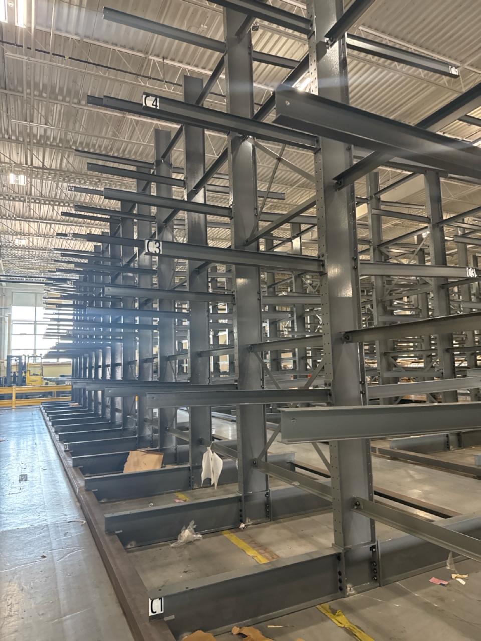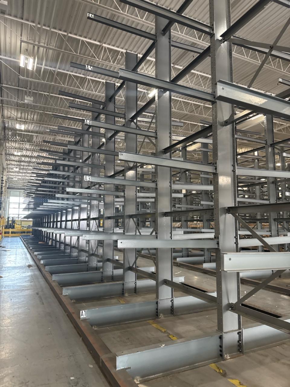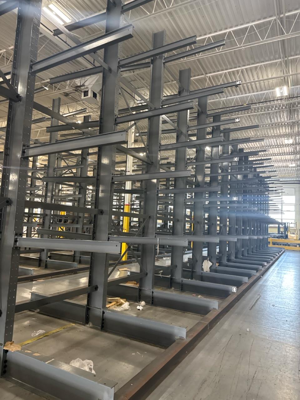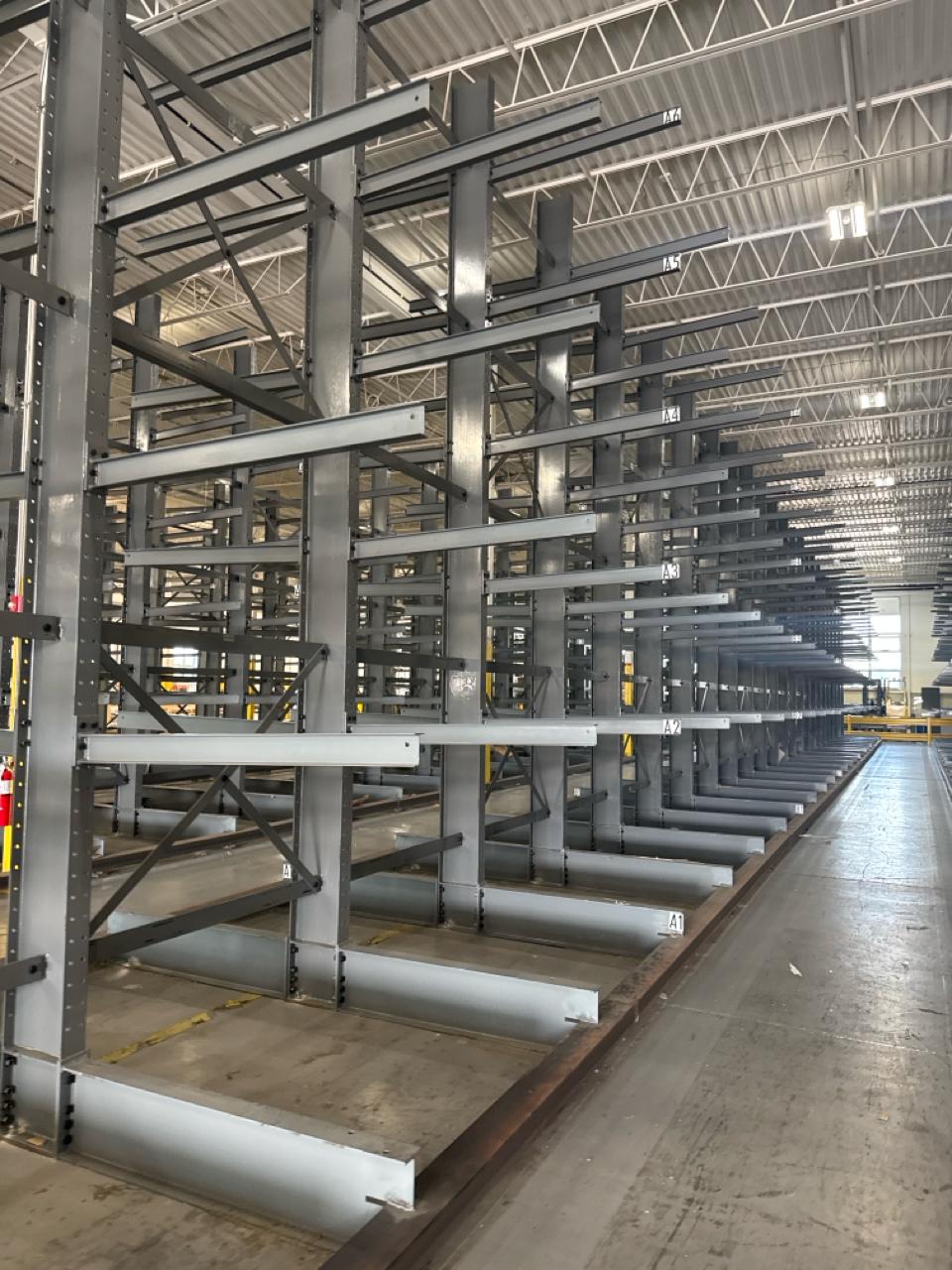(27 uprights and 270 arms) All-Lift/Cogan cantilever racking, double sided, 20 ft. high w/ 54 in. adjustable arms, 1500 lbs. cap. ea. [Loc. Fabrication]