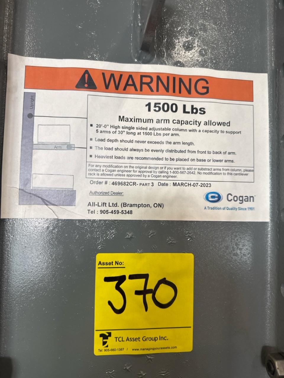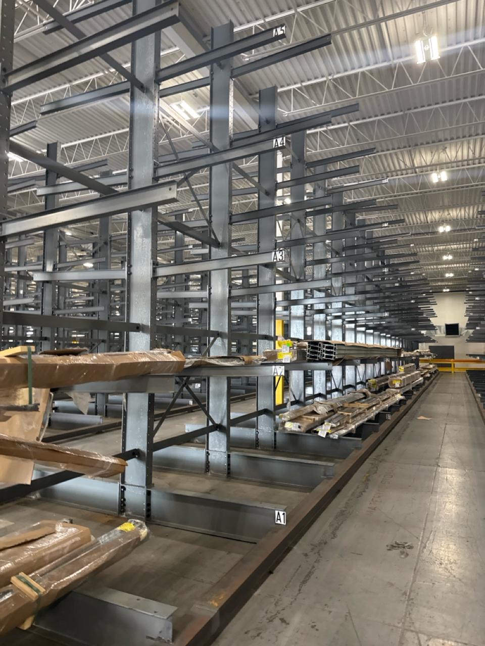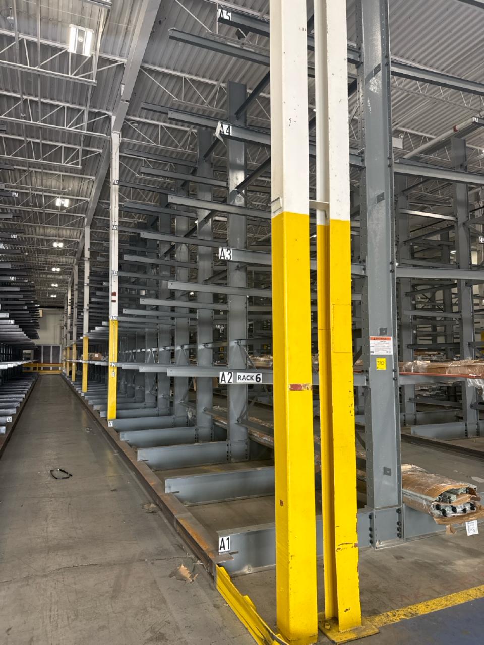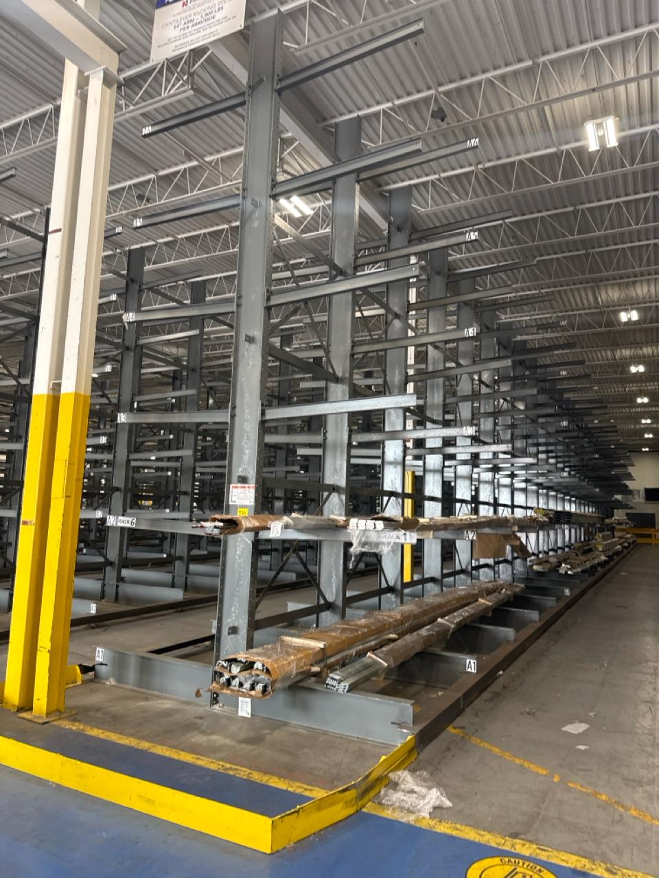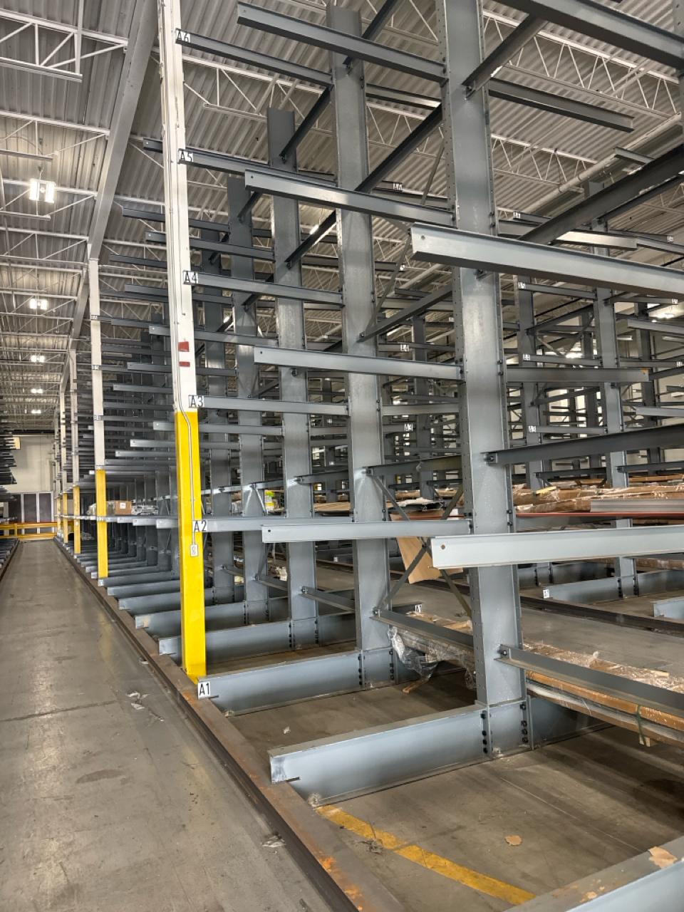 (27 uprights and 270 arms) All-Lift/Cogan cantilever racking, double sided, 20 ft. high w/ 54 in. adjustable arms, 1500 lbs. cap. ea. [Loc. Fabrication]