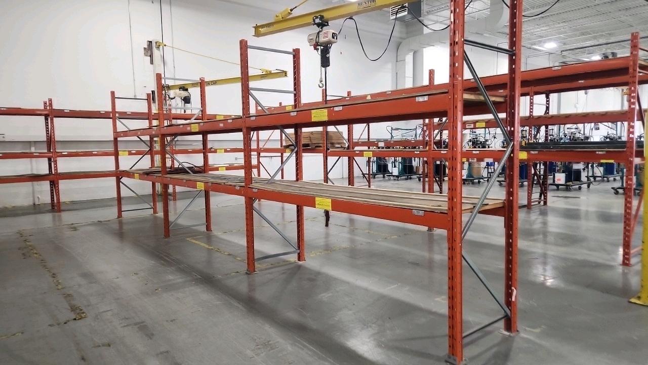 (15 sec.) pallet racking, 36 in. x 10 ft. x 10 ft. high, 3000 lbs. cap. ea. [Loc. Assembly]