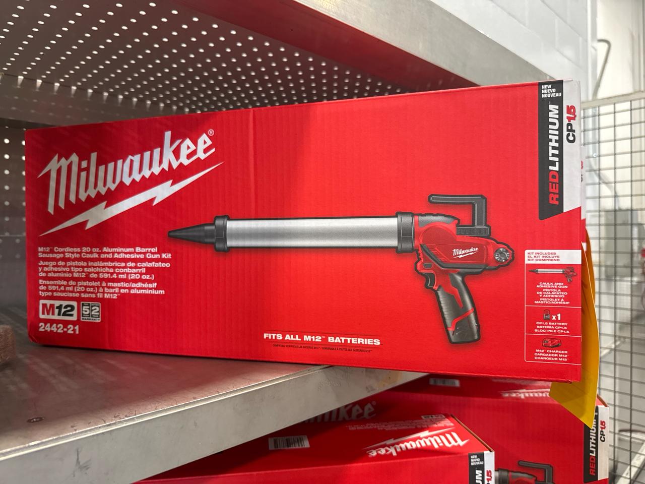 NEW Milwaukee 2442-21 M12 20 oz Aluminum Barrel Sausage Style Caulk and Adhesive Gun Kit [Loc. Tool Crib]
