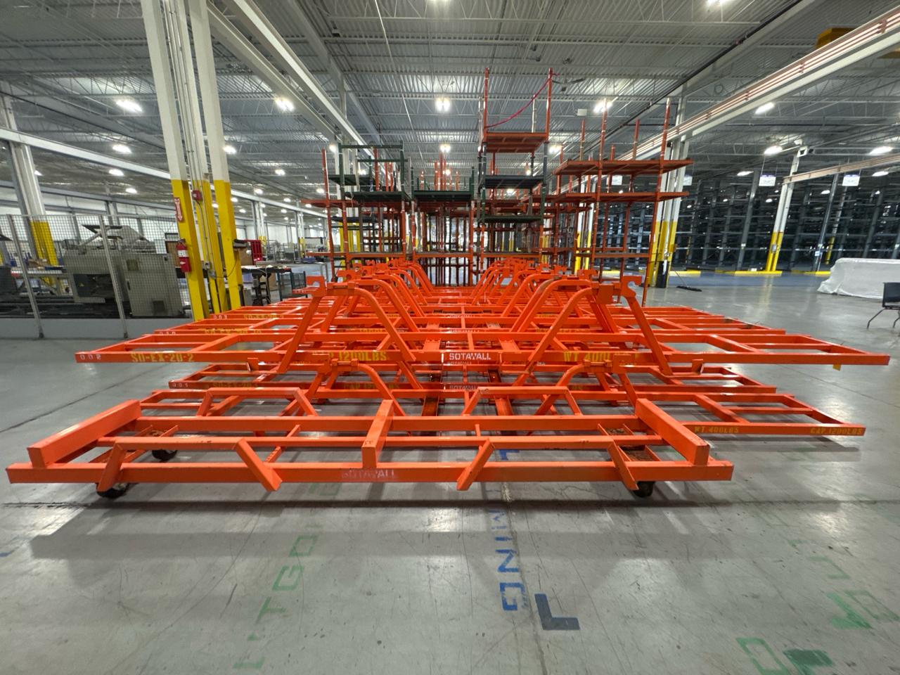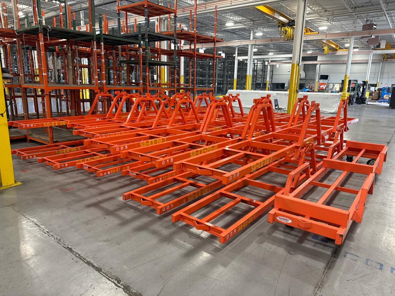 (12) Assorted Stackable Material Handling Storage Racks w/ Transfer Cart [Loc. Fabrication]