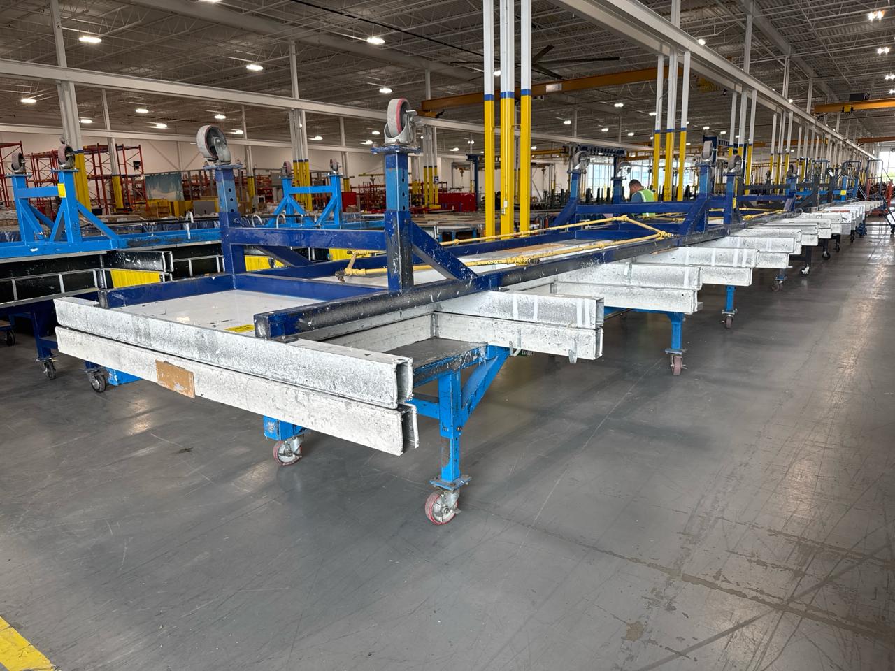 (2) Mobile Transfer/Work Table approx 90 in. x 16 ft.x 36 in. [Loc. Assembly]