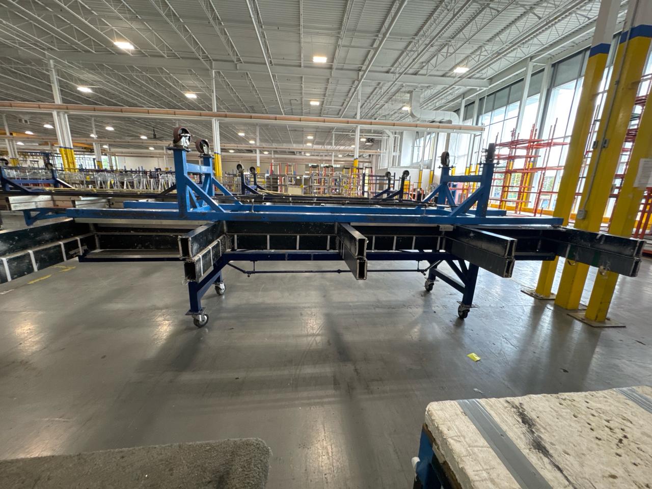 (2) Mobile Transfer/Work Table approx 90 in. x 16 ft.x 36 in. [Loc. Assembly]