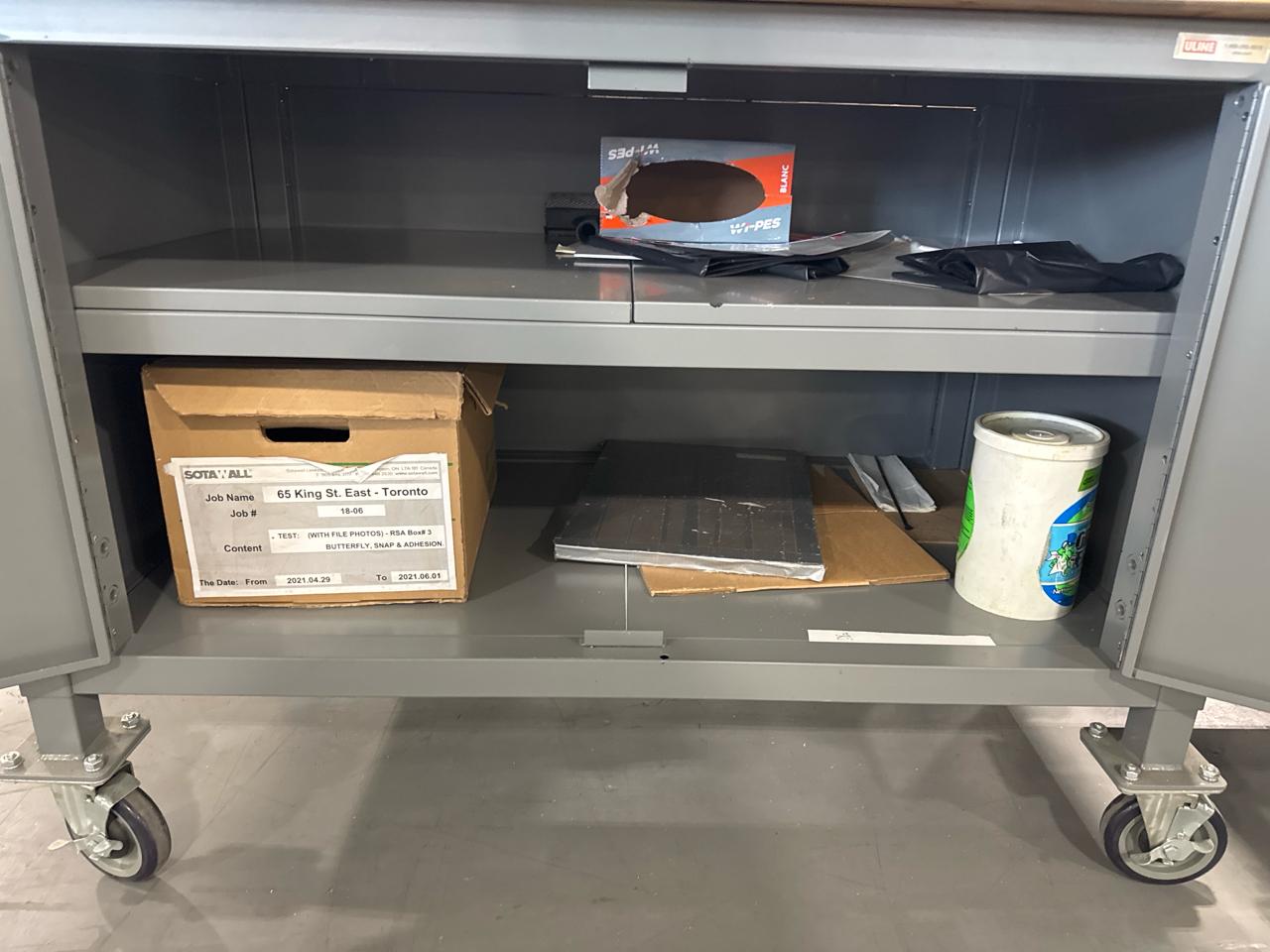 Rolling 2 Door Cabinet w/ Wood Top approx. 48 in. x 30 in. x 36 in. [Loc. Assembly]