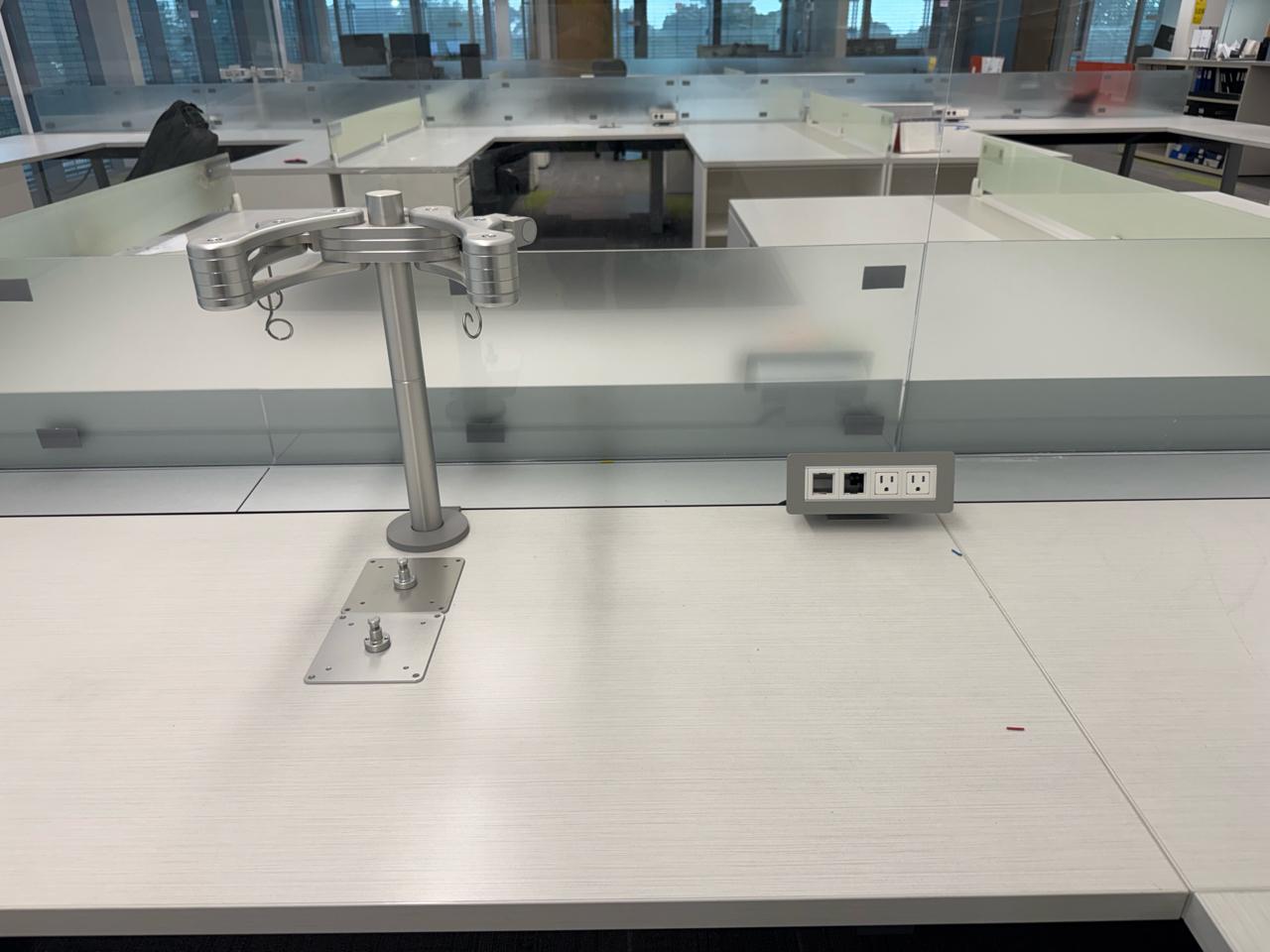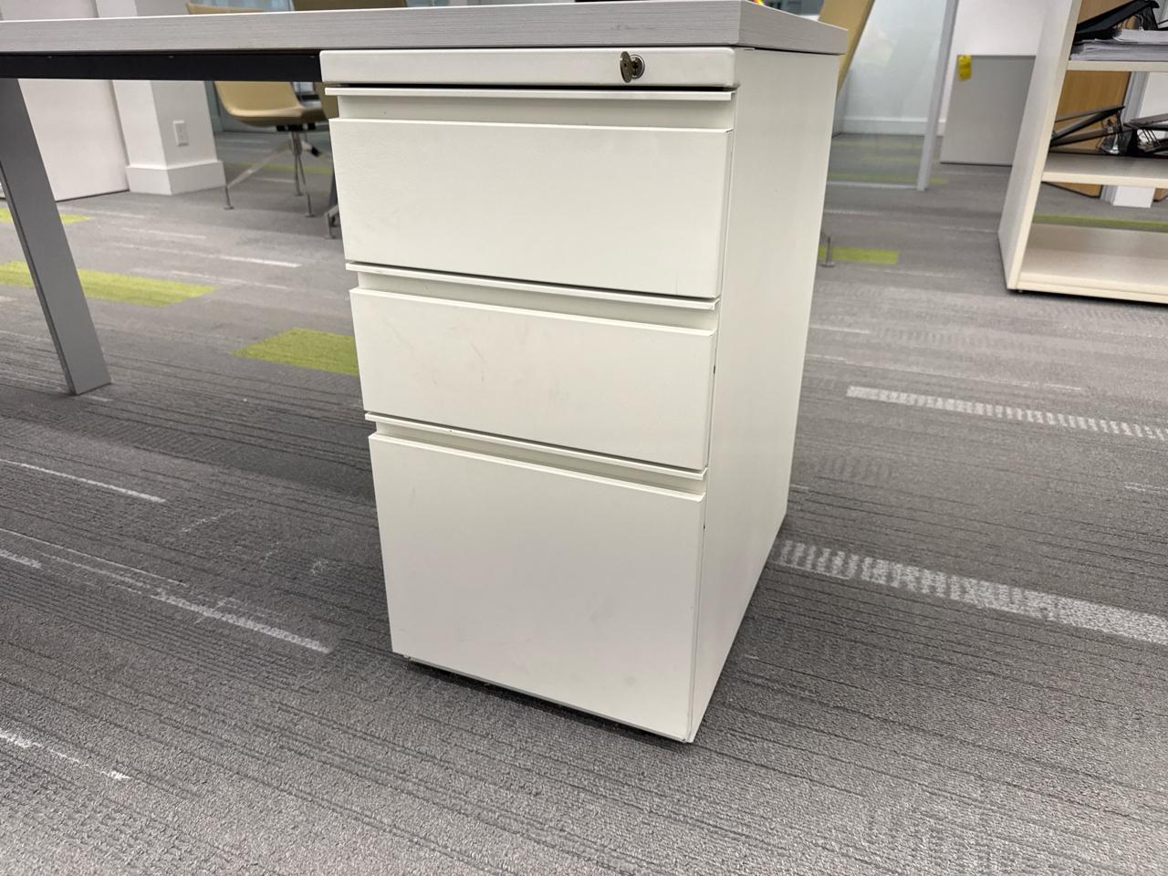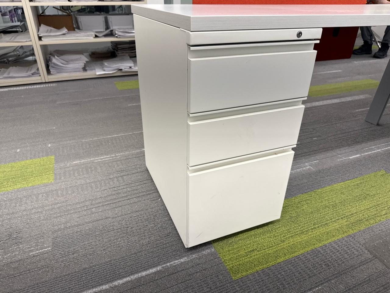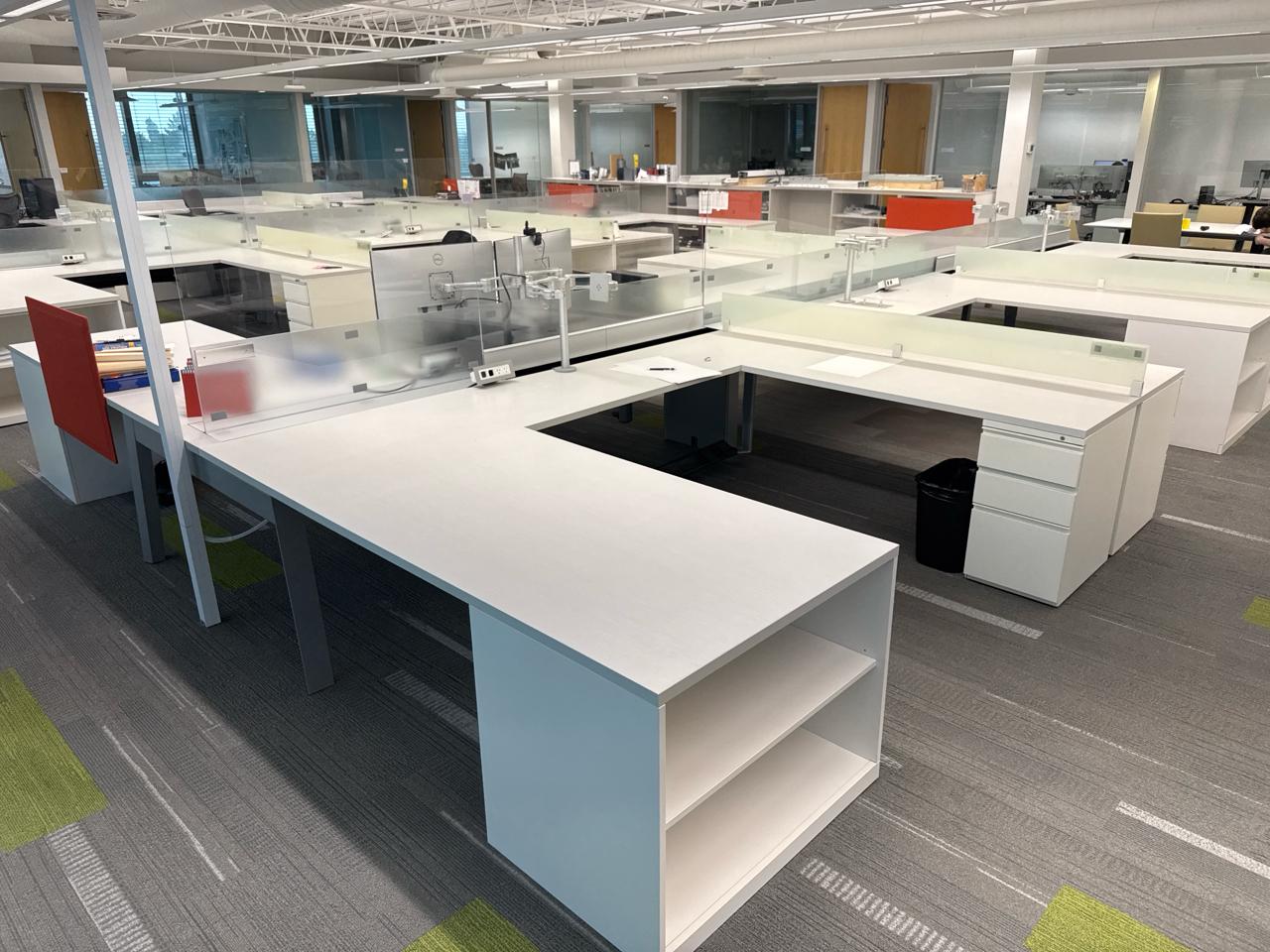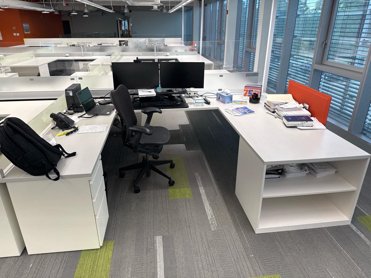 Office furniture, 6 sectional Office cubical, 223 inch length x 8ft width x 29 inch height. Per cubical is 111.5 inch by length. C/W 3 door filing cabinet. Contents not included [2nd Floor Office]