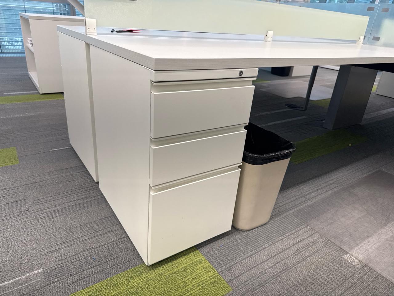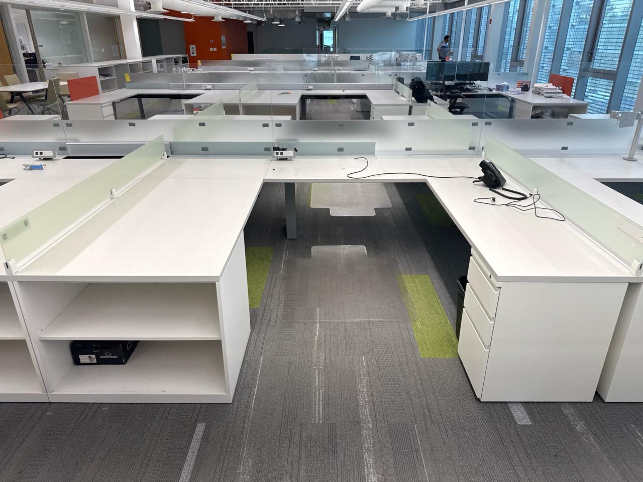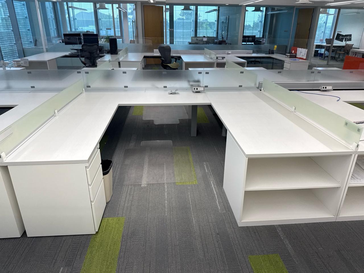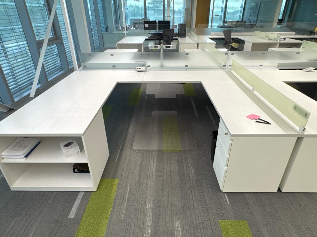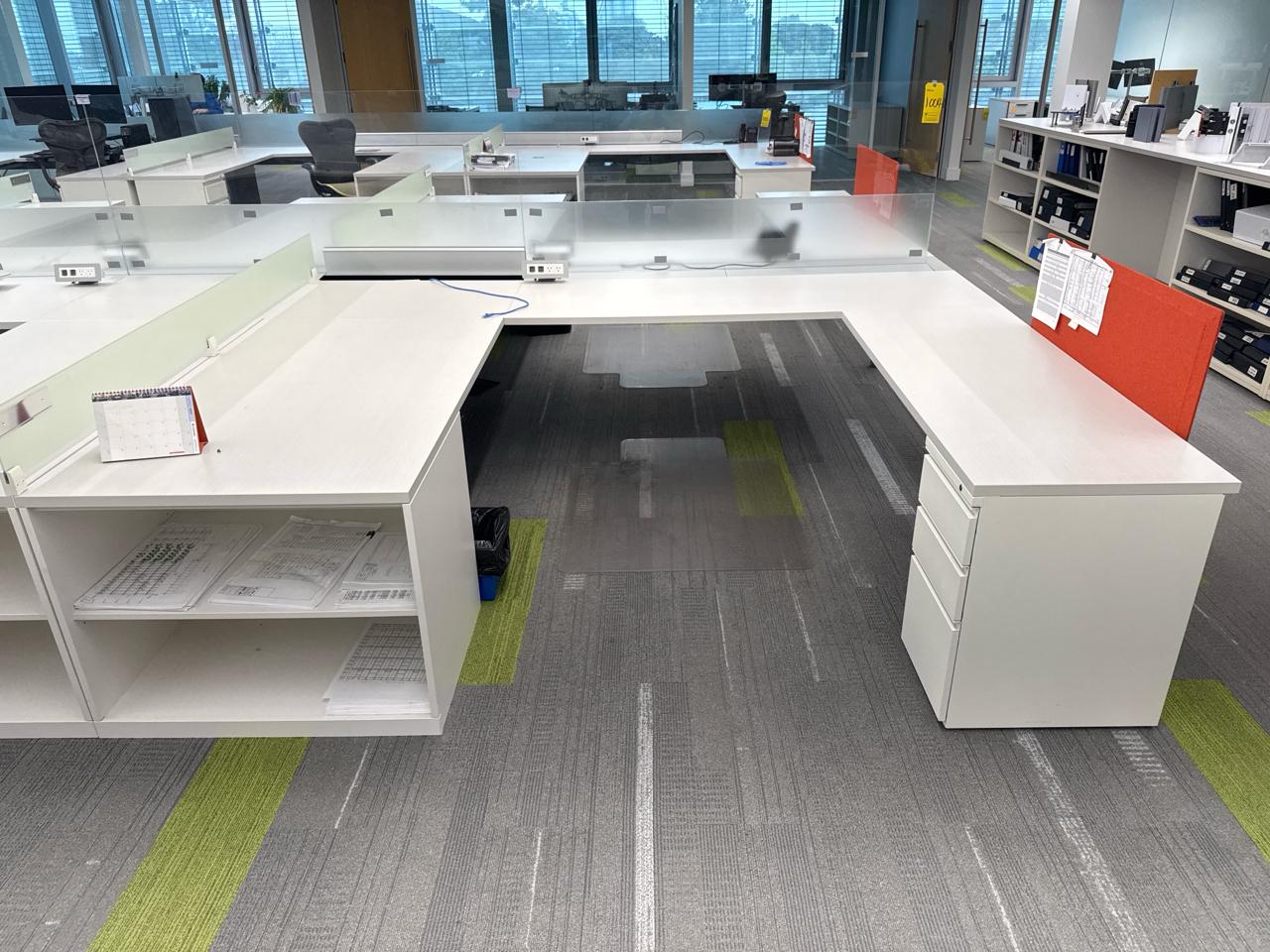 Office furniture, 6 sectional Office cubical, 223 inch length x 8ft width x 29 inch height. Per cubical is 111.5 inch by length. C/W 3 door filing cabinet. Contents not included [2nd Floor Office]