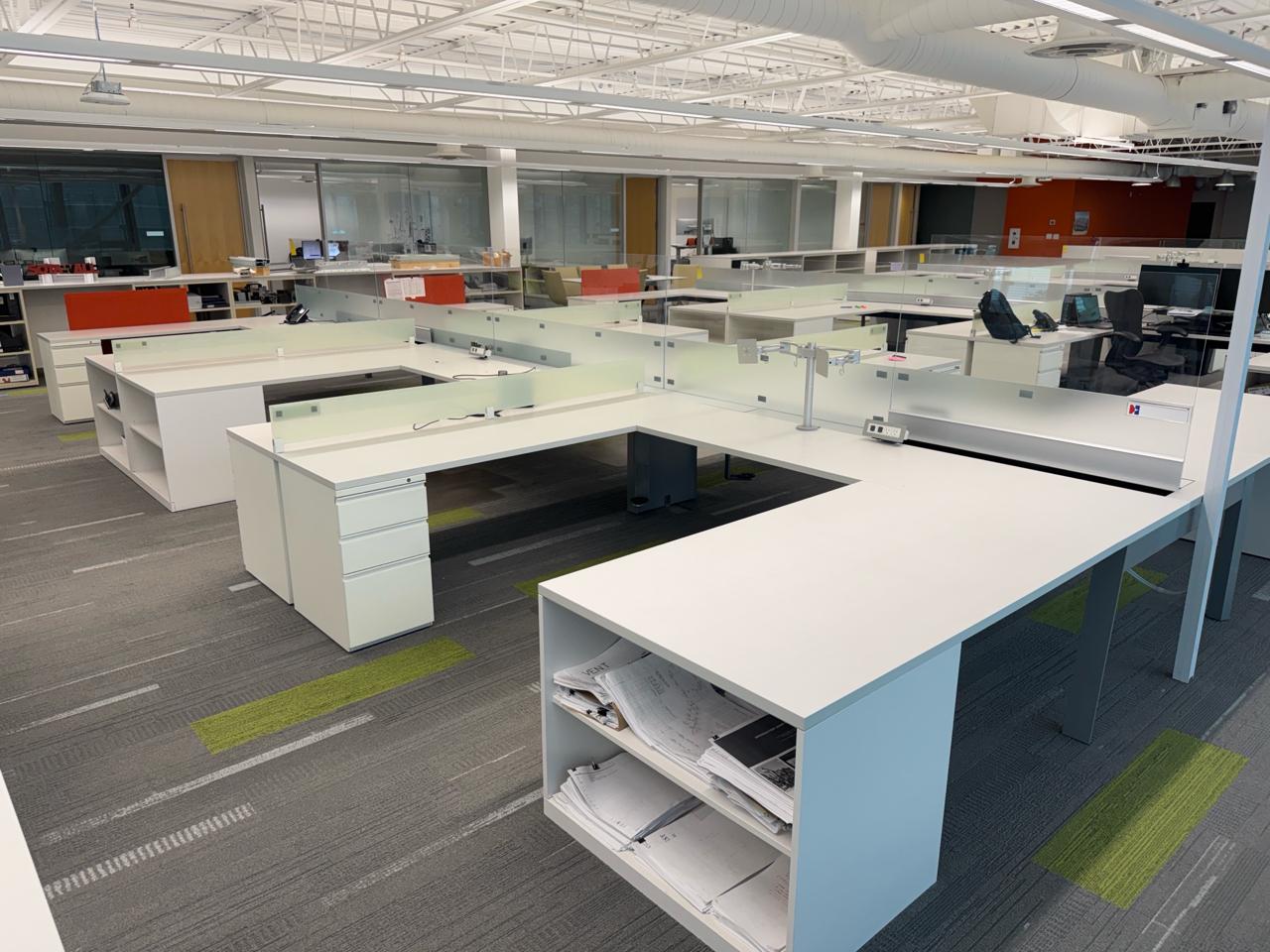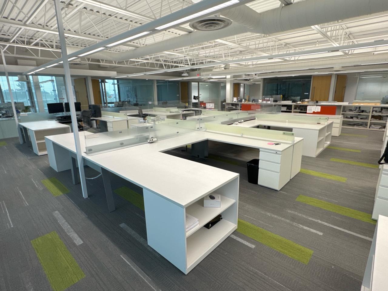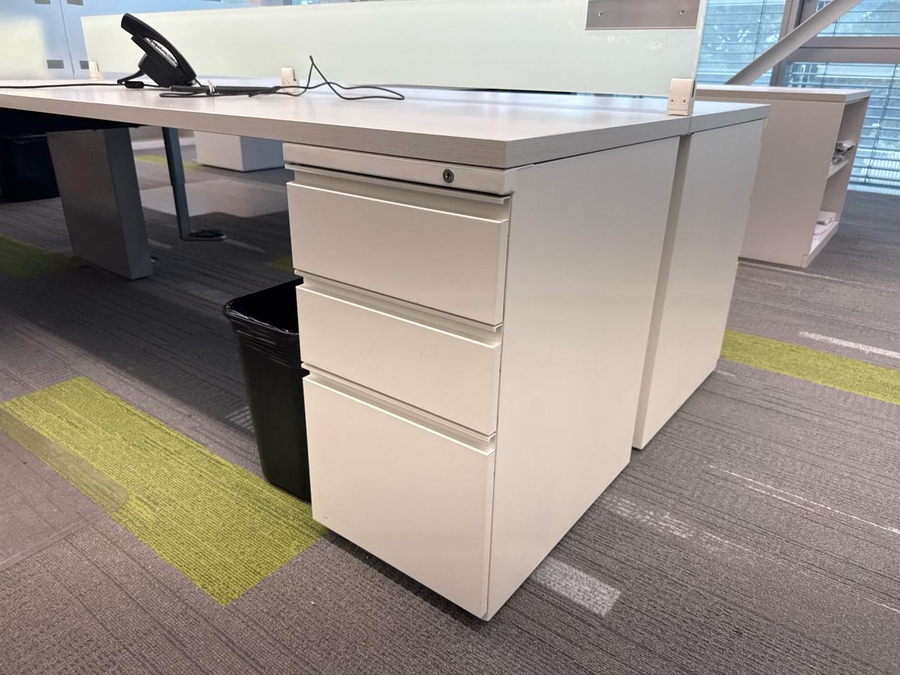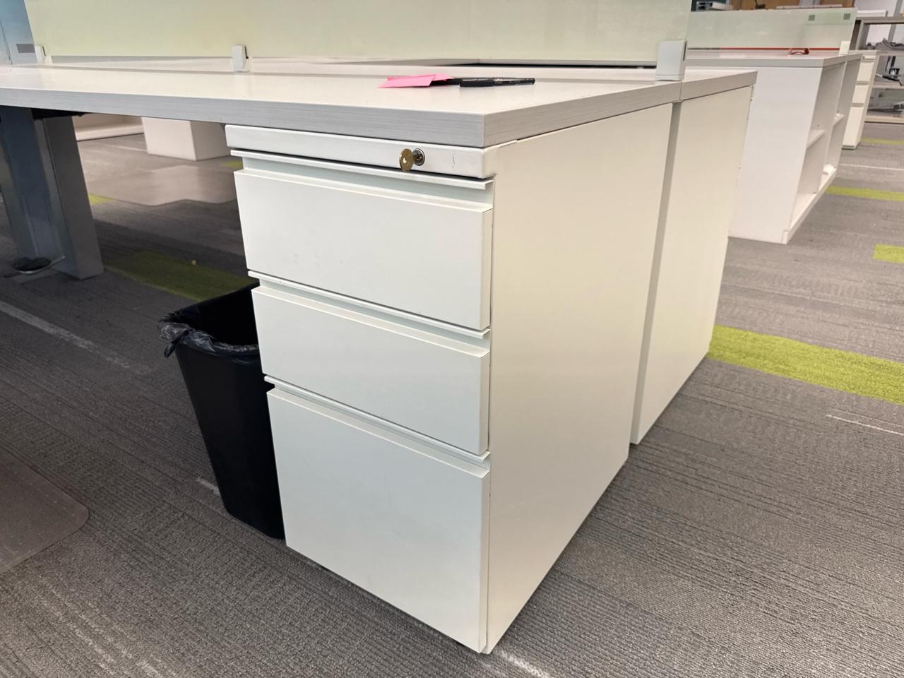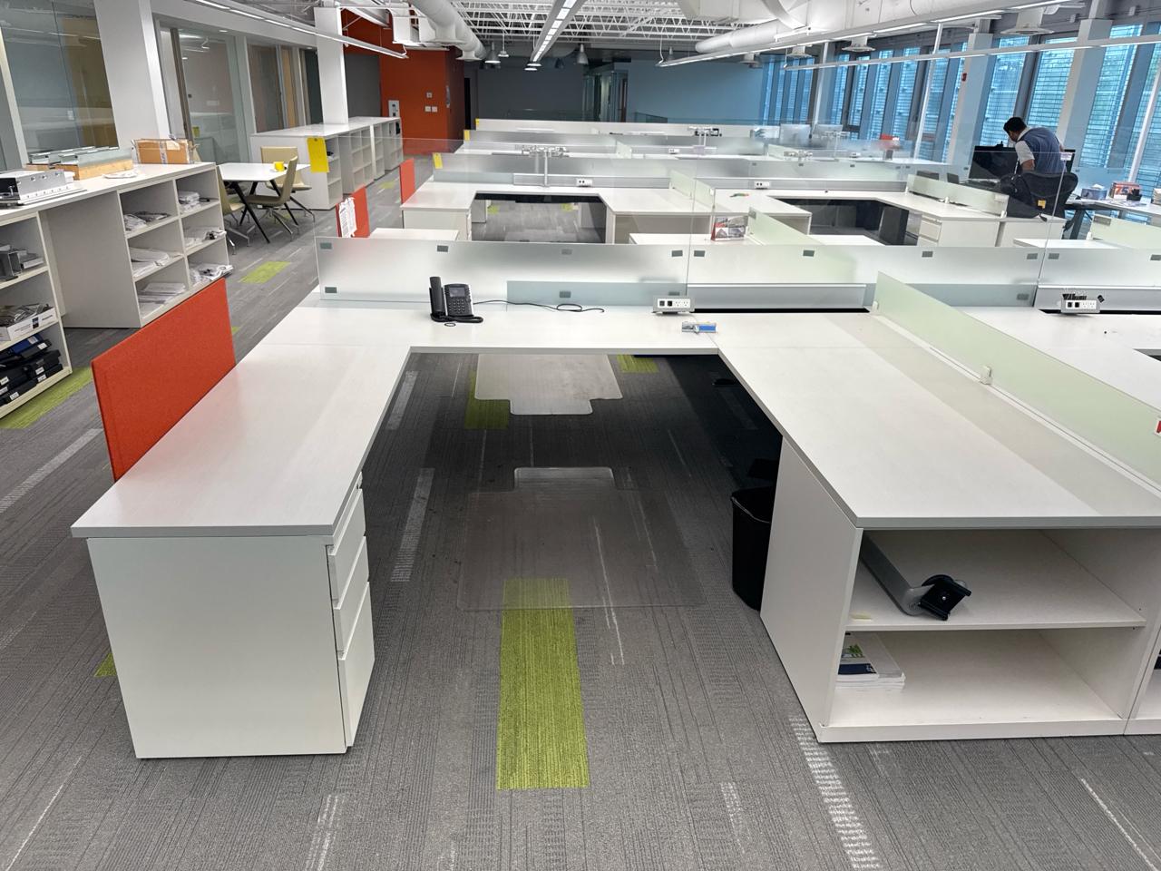 Office furniture, 6 sectional Office cubical, 223 inch length x 8ft width x 29 inch height. Per cubical is 111.5 inch by length. C/W 3 door filing cabinet. Contents not included [2nd Floor Office]