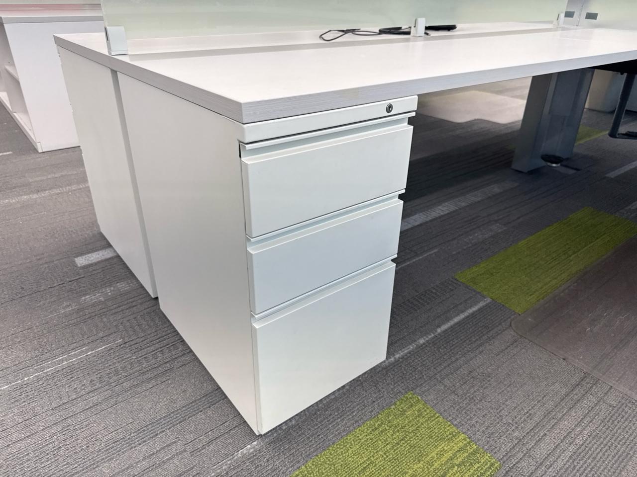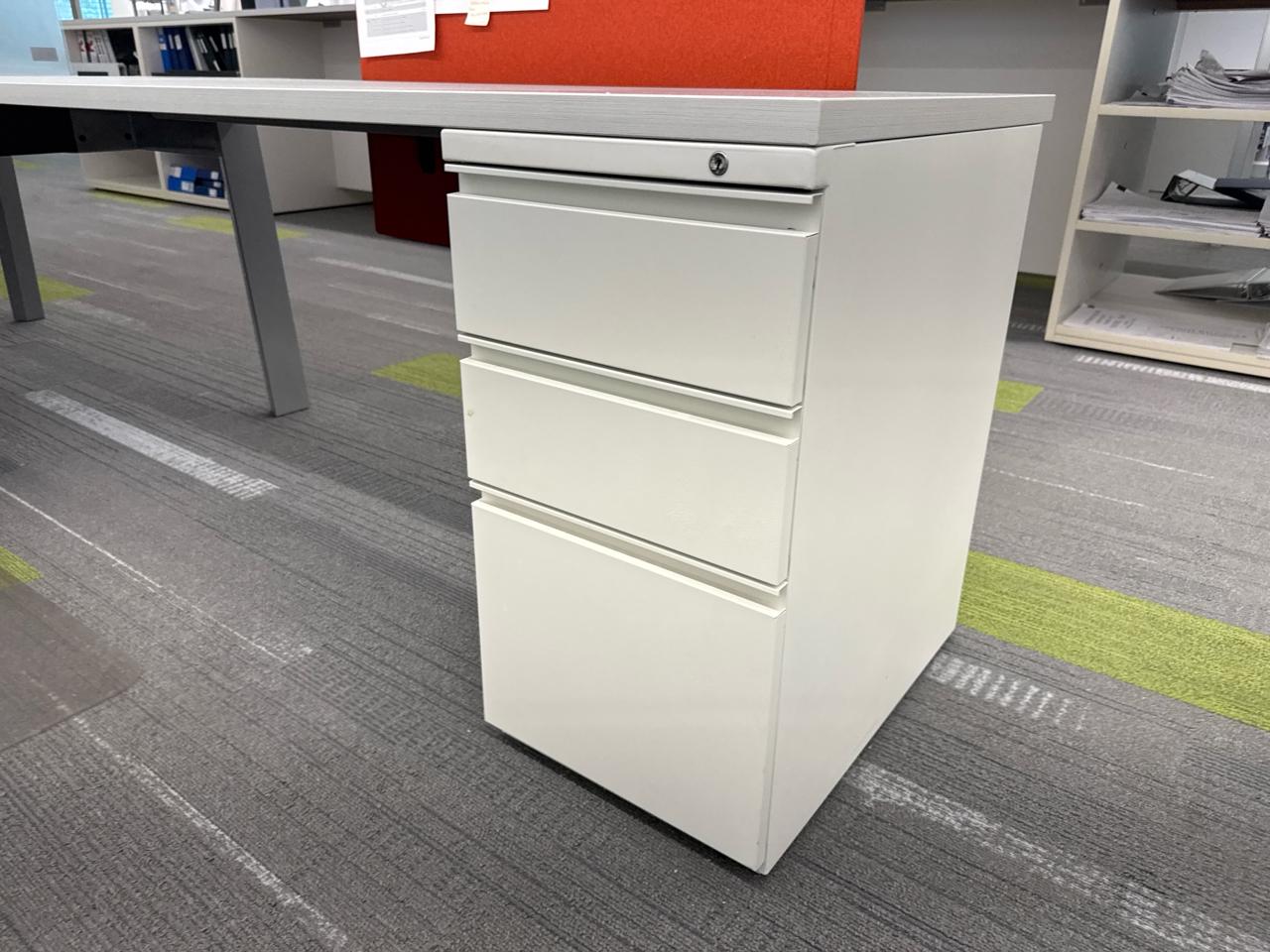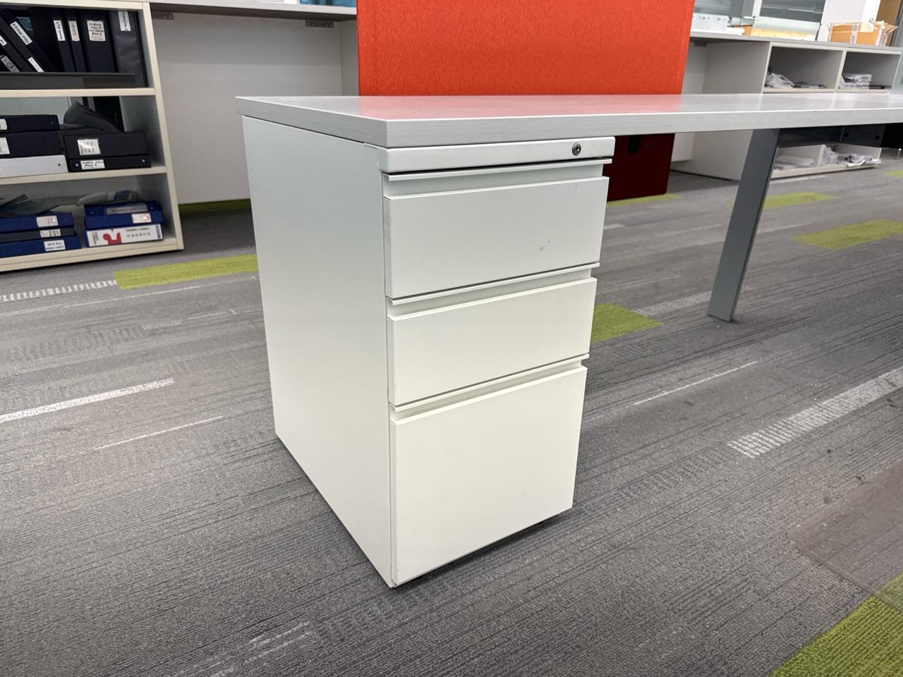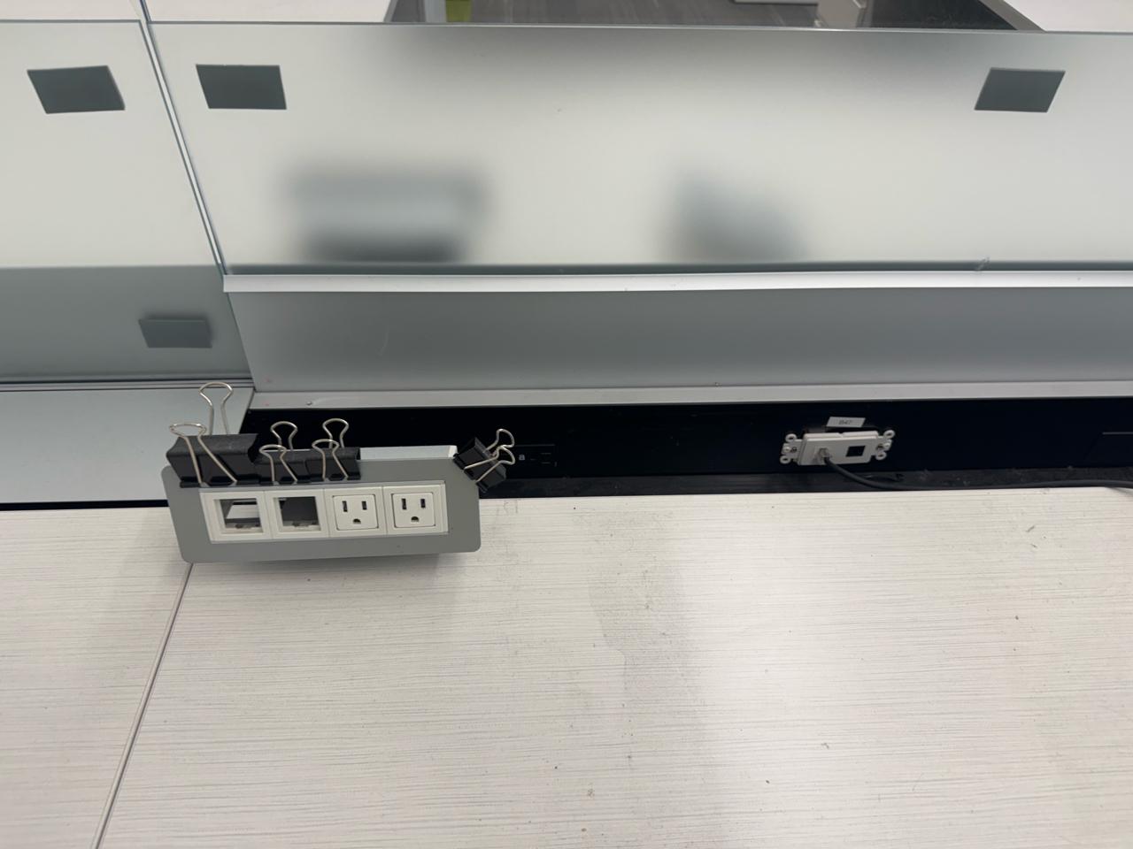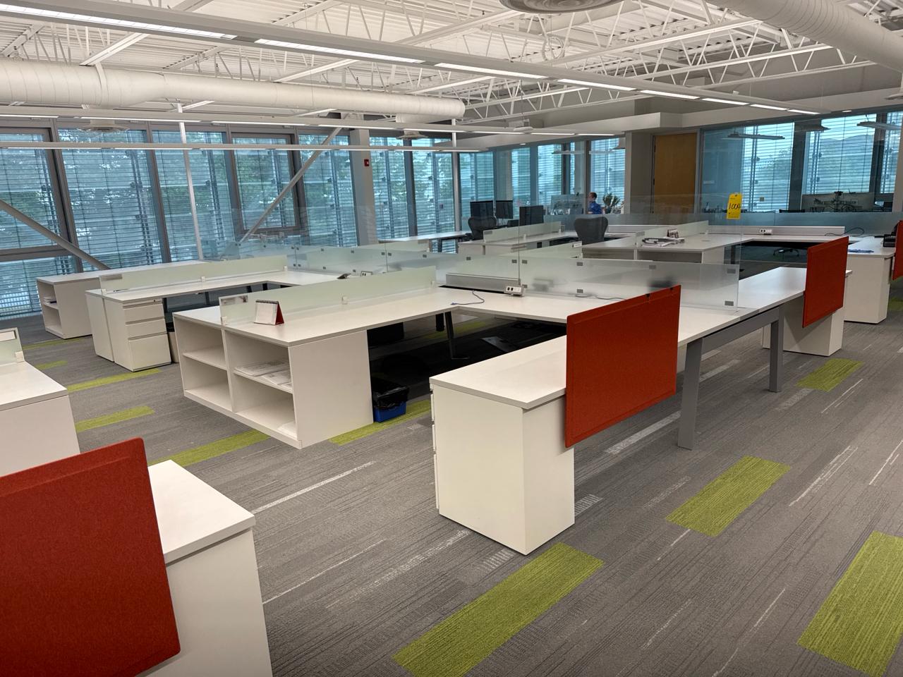 Office furniture, 6 sectional Office cubical, 223 inch length x 8ft width x 29 inch height. Per cubical is 111.5 inch by length. C/W 3 door filing cabinet. Contents not included [2nd Floor Office]