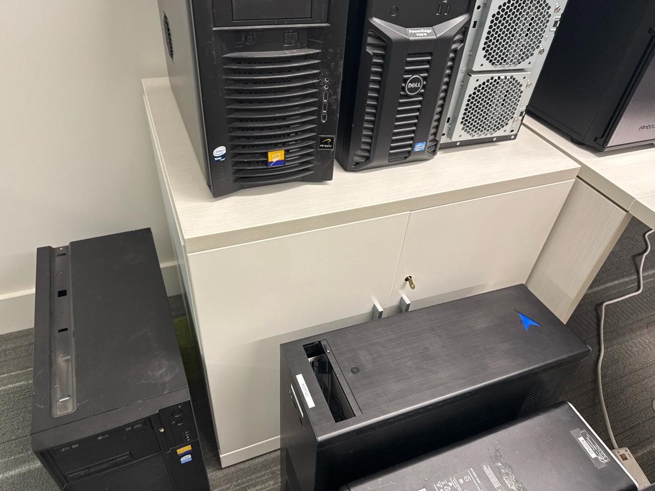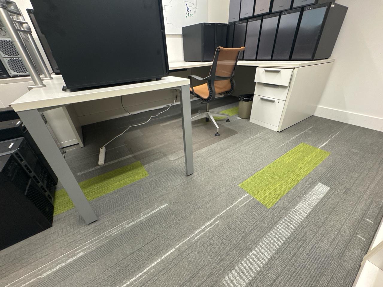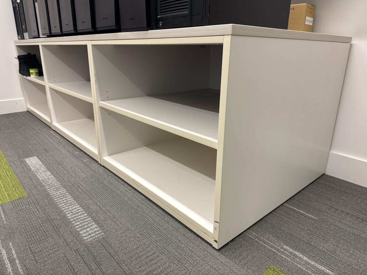 Office furniture, U-Shaped desk 113 length x 71 inch width x 28.5 inch height, shelving desk unit 9ft length x 3ft height x 29 inch height, Cabinet shelving unit 29.5 length x 23 inch width x 29inch height, (1) office chairs, contents excluded, [2nd floor Office]