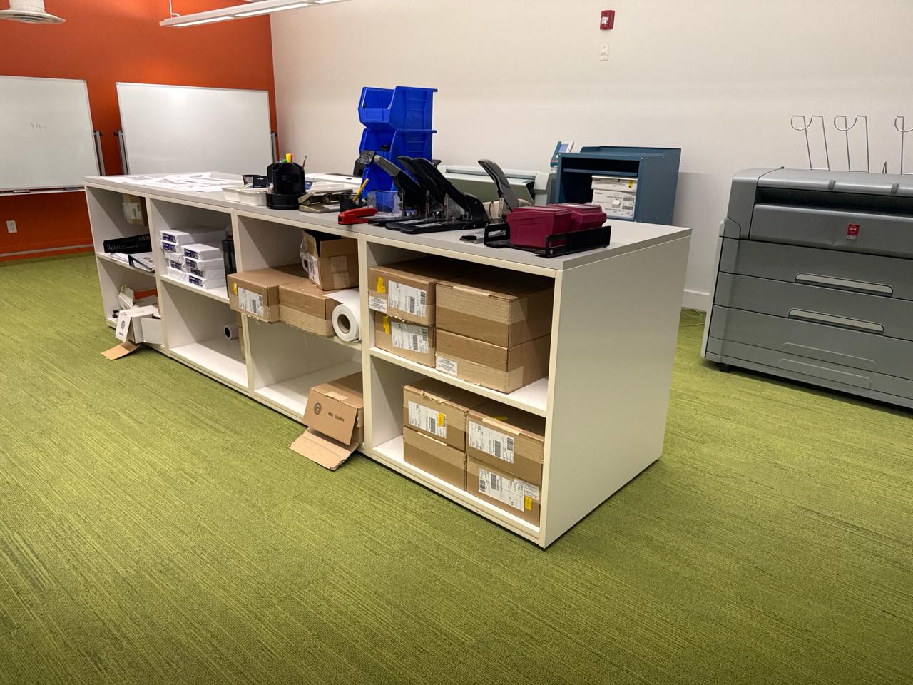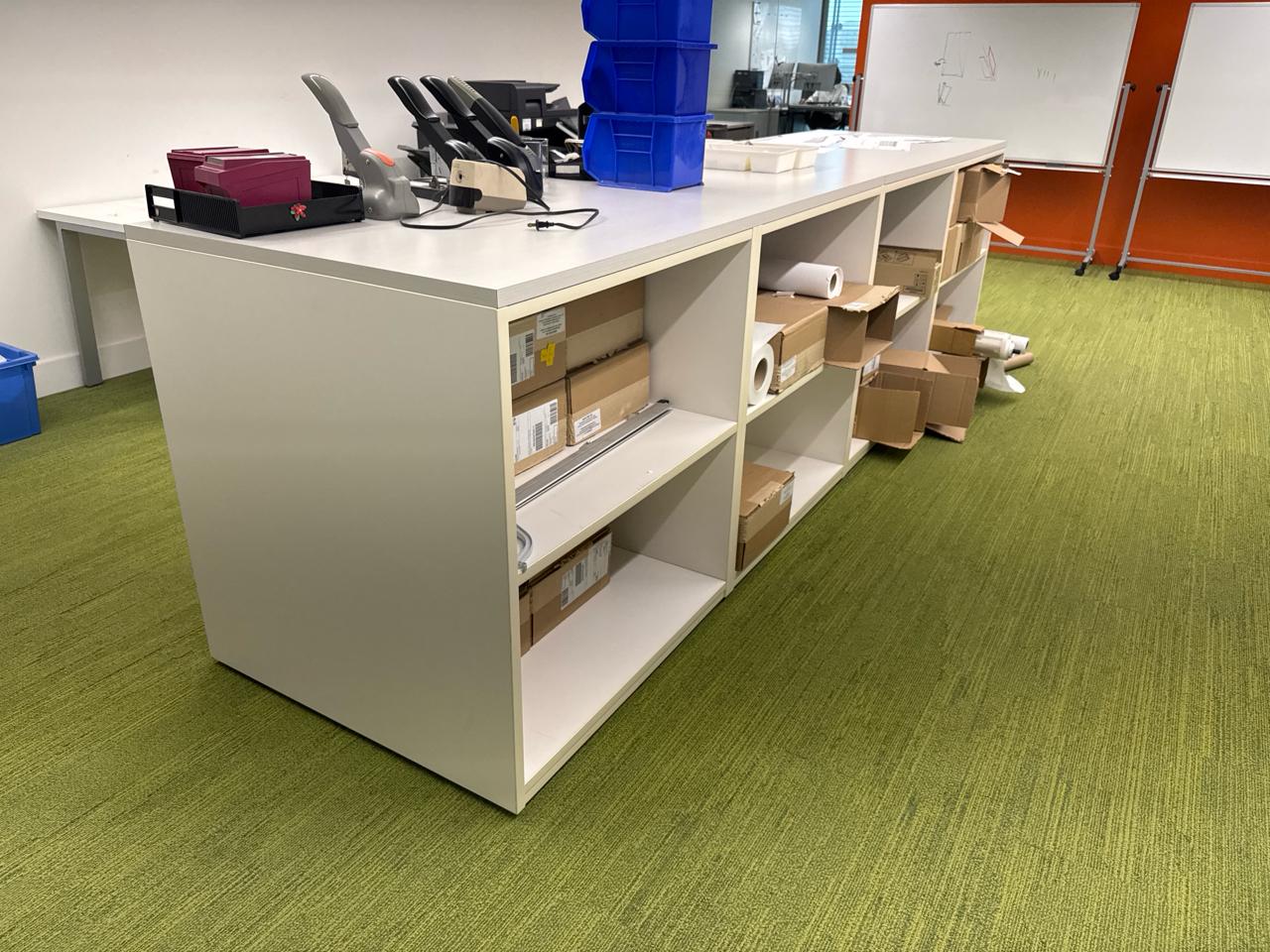 Office furniture, (2) double sided shelving unit 6ft length x 3 ft width x 40 inch height. Contents not included. [2nd floor Office]