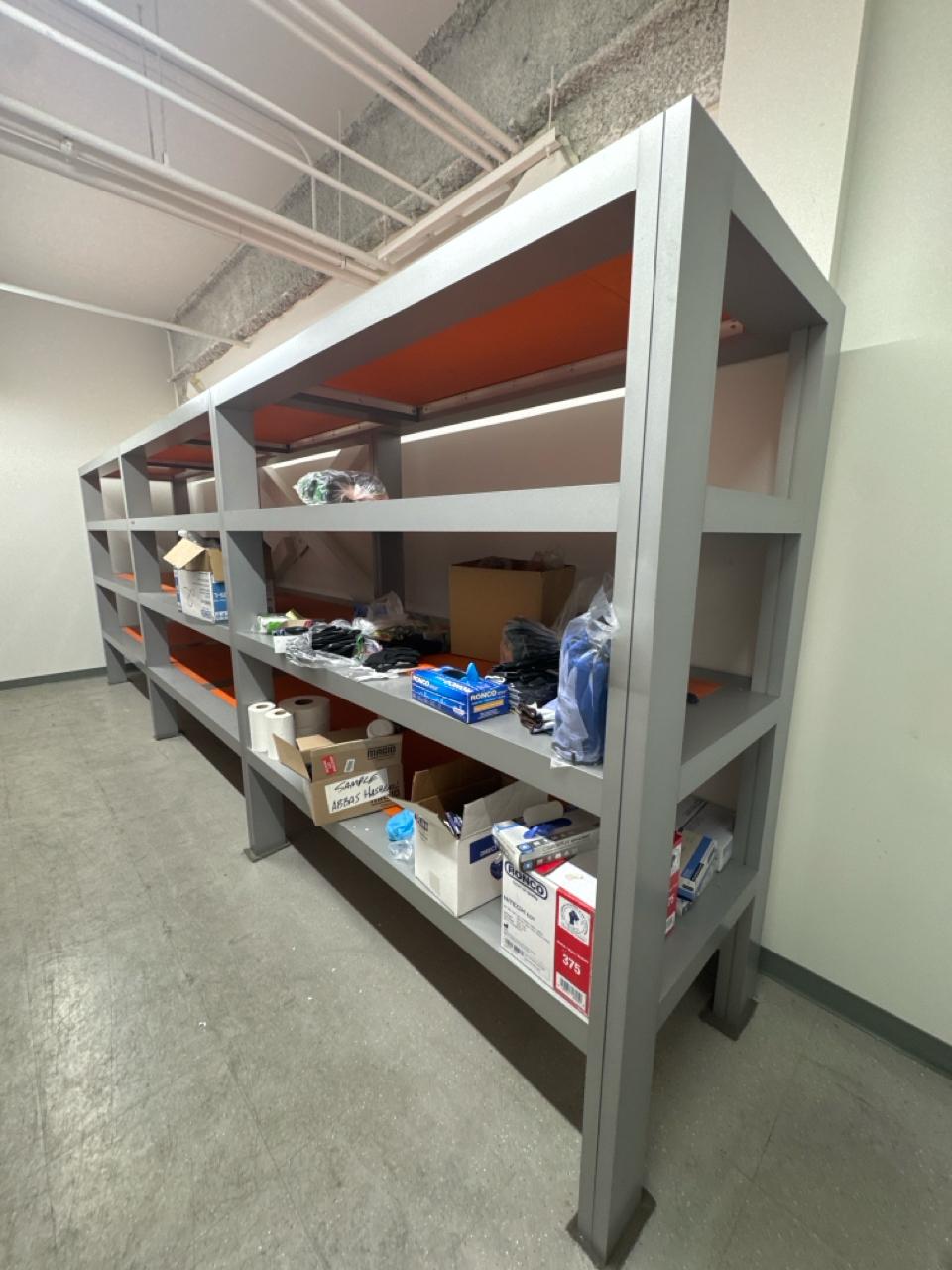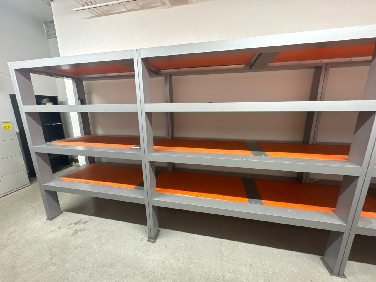 (2) Shelving Units approximately 82 inch height x 3 feet width x 18 feet length.