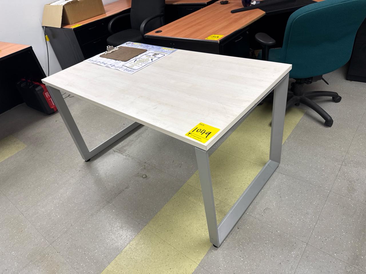 Office furniture, (2) L-shaped desks, (1) desk, (2) office chairs. Contents not included [Fabrication]