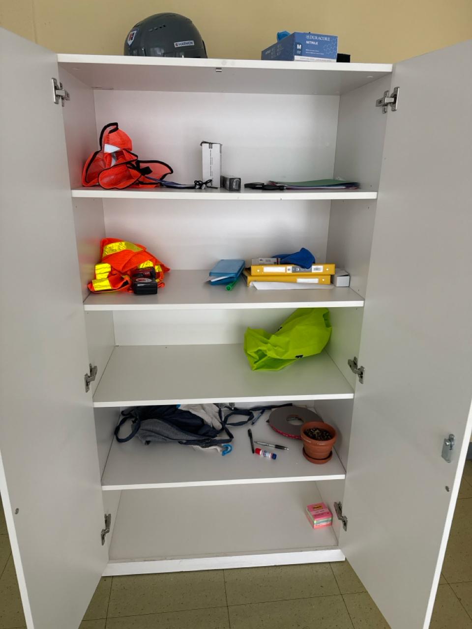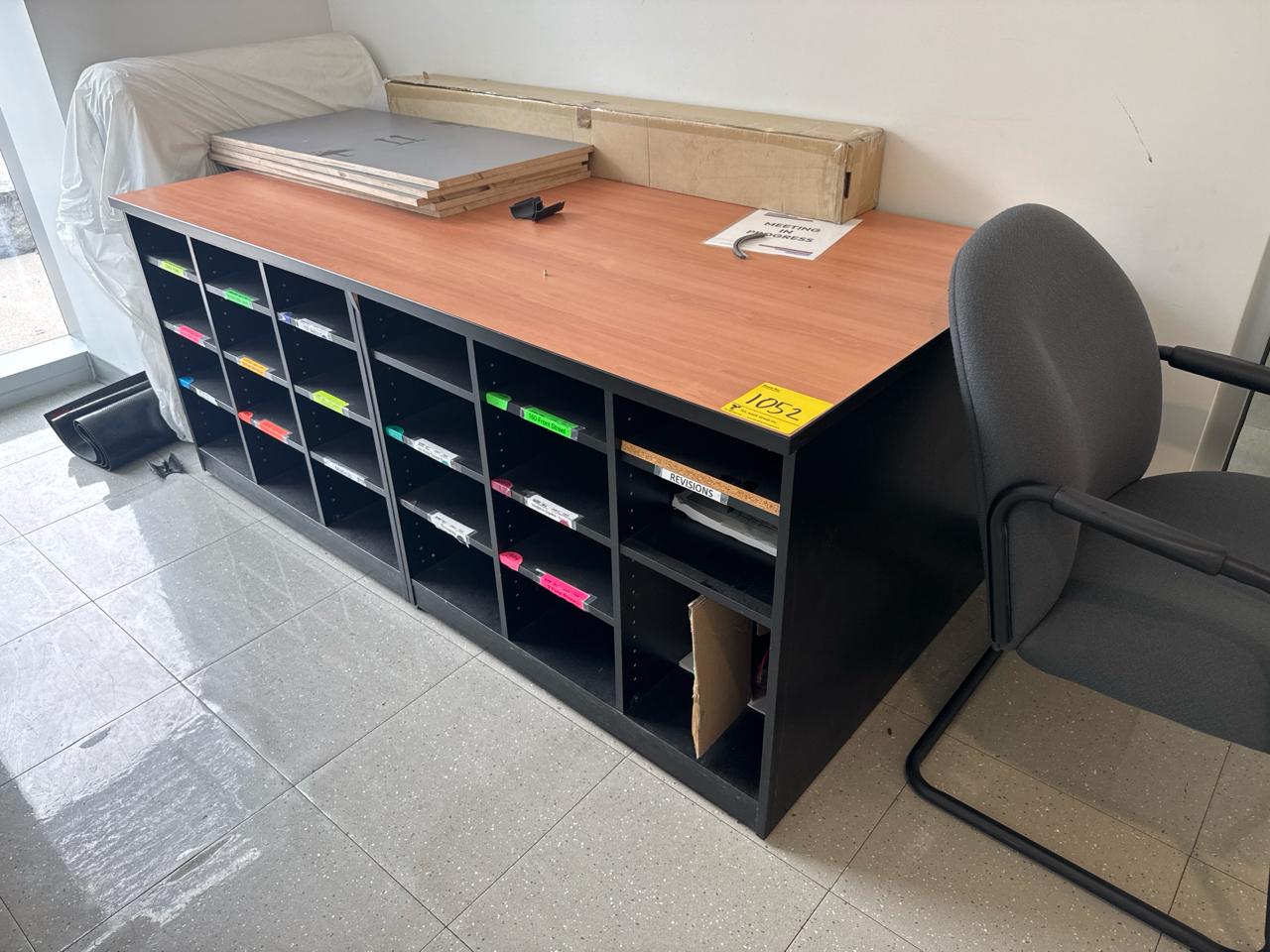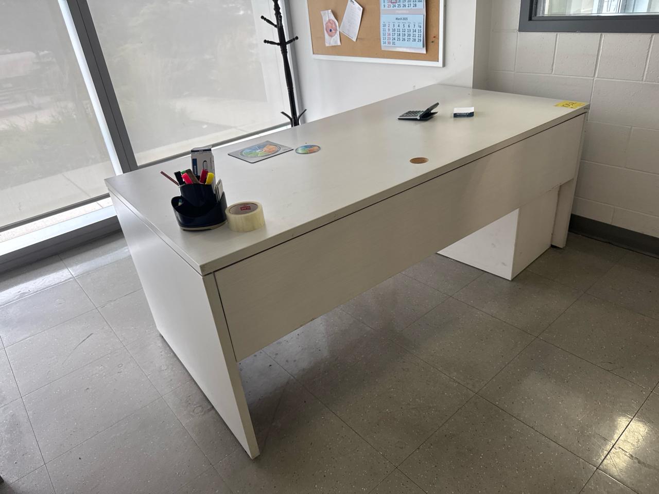 Office furniture, (2) desks, (1) cabinet, (2) shelving desk unit Contents not included [Assembly Area]