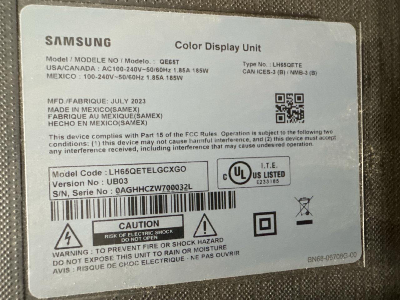 Samsung 65 inch Television, [Loc. Assembly Area]