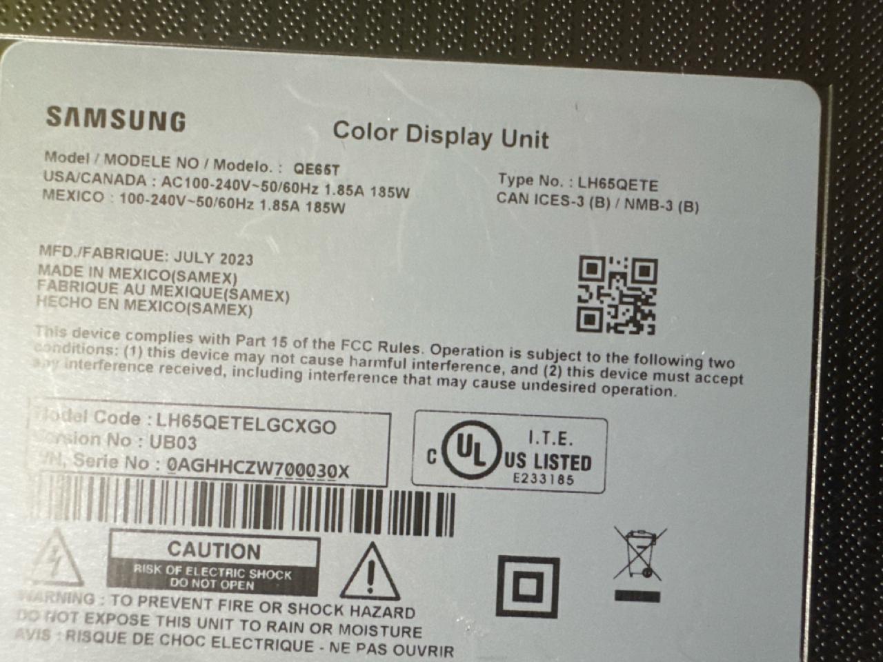 Samsung 65 inch Television, [Loc. Assembly Area]