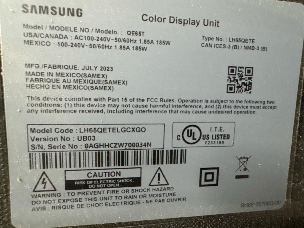 Samsung 65 inch Television, [Loc. Assembly Area]