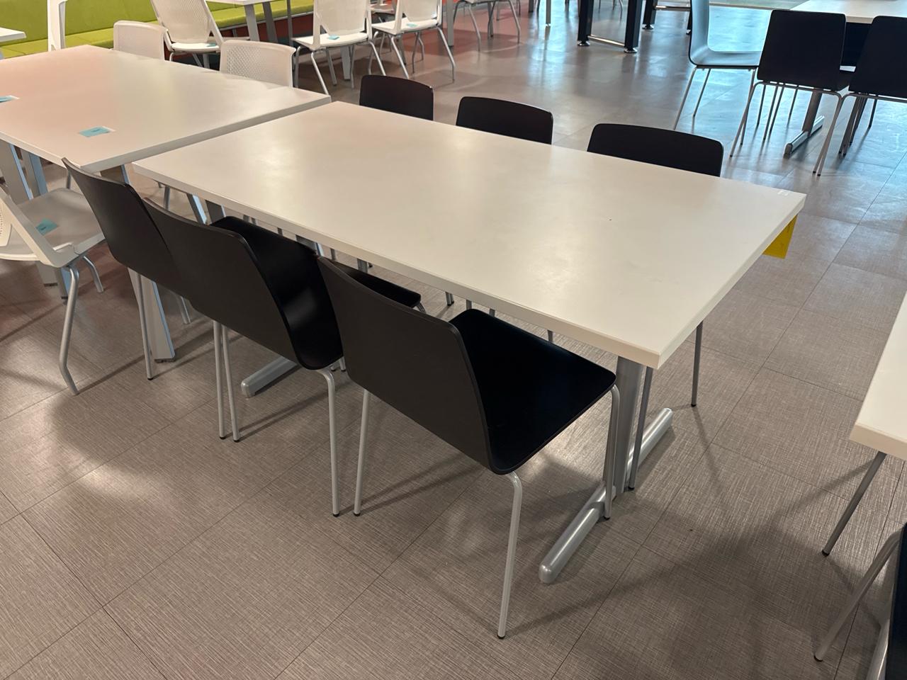 Cafeteria furniture, (1) table 5 ft length x 29.5 inch width x 29.5 inch height, (6) chairs [Loc. Cafeteria 2nd Floor Office Area]