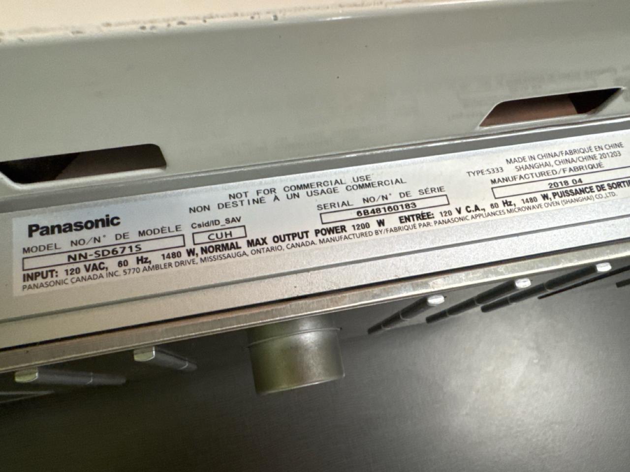 Panasonics microwave, Model NN-SD671S,[Loc. Fabrication]