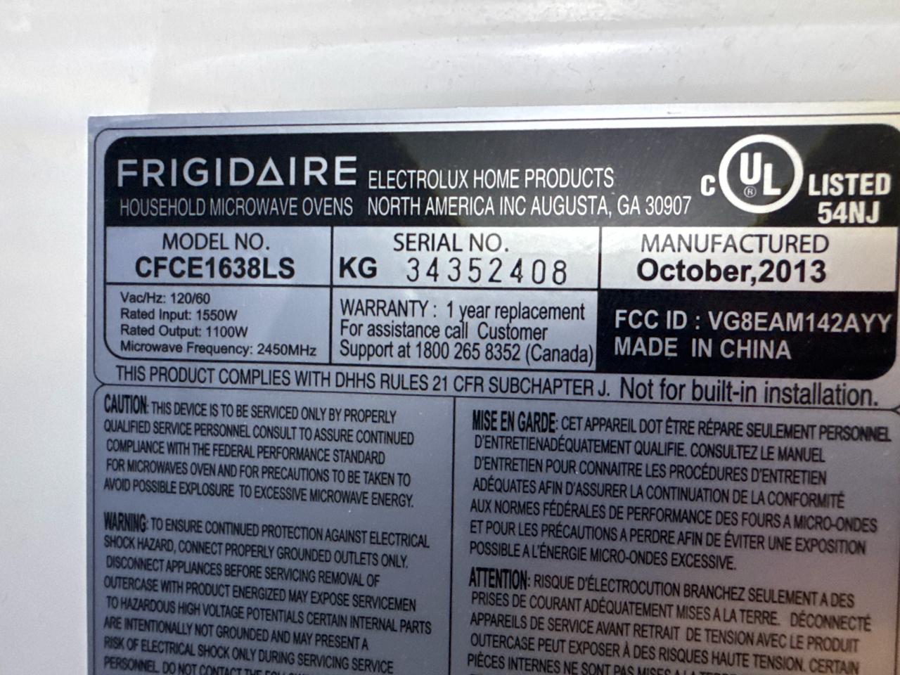 Frigidaire microwave, Model CFCE1638LS, [Loc. Fabrication]