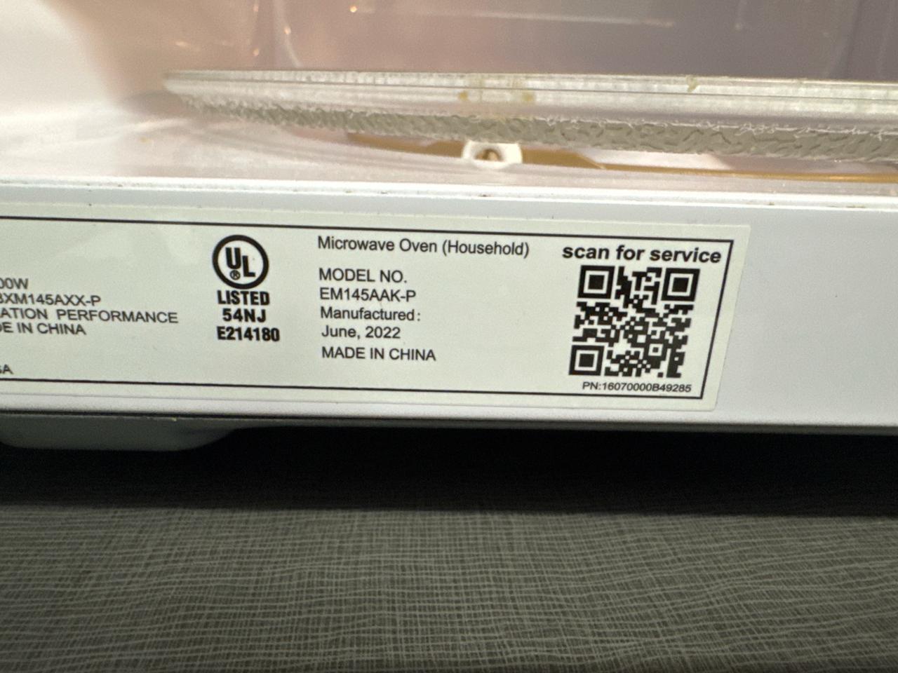 Black+Decker microwave, Model EM145AAK-P , [Loc. Cafeteria Assembly area]
