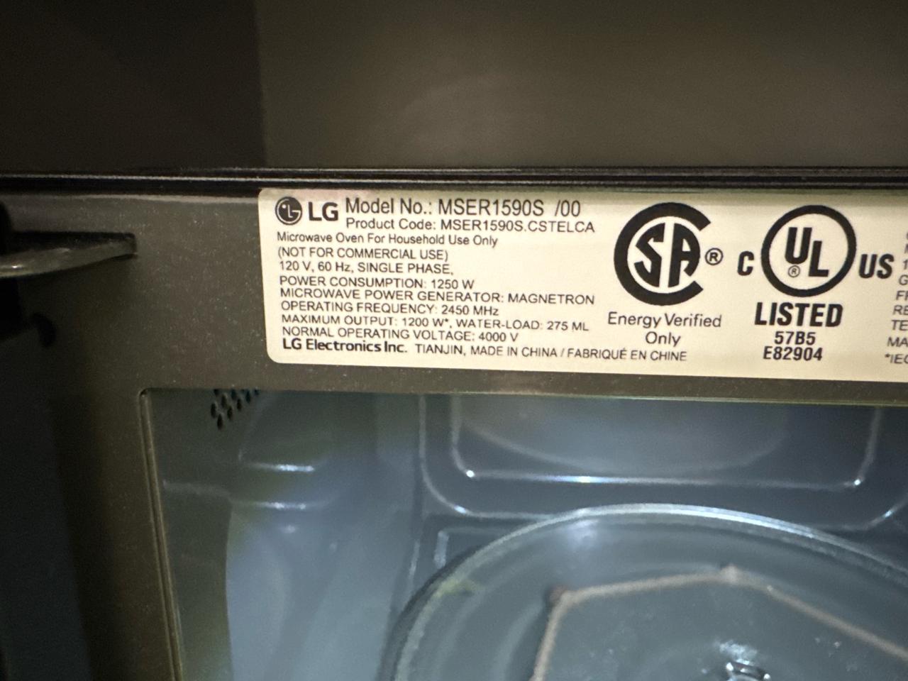 LG Microwave, model MSER1590B, [Loc. Cafeteria Assembly Area]