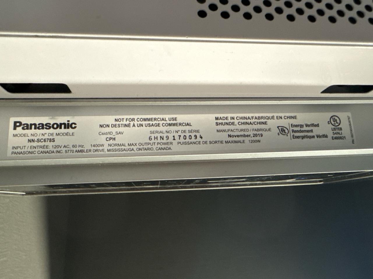Panasonic Inverter Microwave, model NN-SC678C, [Loc. Cafeteria Assembly Area]