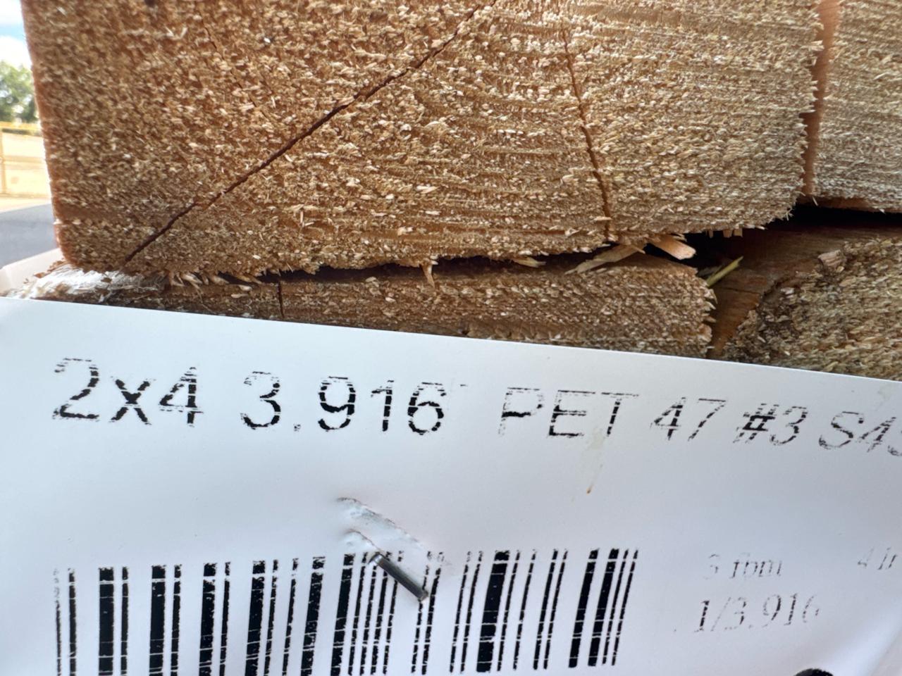 2 in.x 4 in. x 3.916 ft. PET 47 #3 S4S KD SPF HT approx. 280pcs [Loc. Exterior Area]