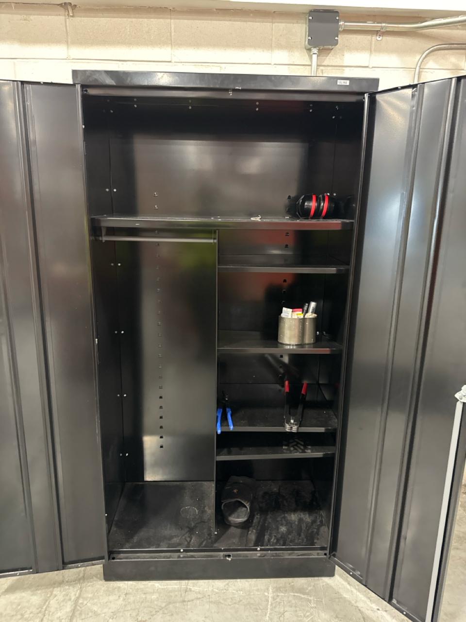 Black storage cabinet, 18 inch depth x 3 feet width x 6 feet height [Loc. Fabrication]