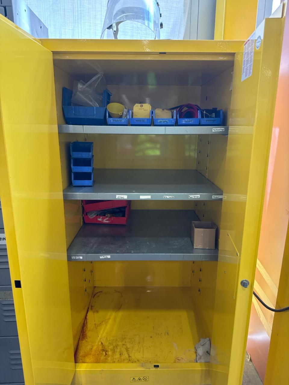 Flammable cabinet 34 inch depth x 34 inch width x 65.5 inch height.