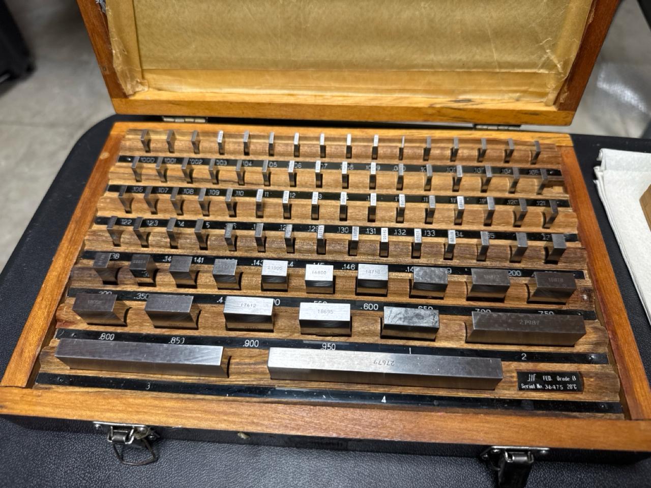 (2) block sets, (1) misc. item, (2) gauge block set (Subject to confirmation. The winner will be determined based on the sum of bids on lots 2 to 64 vs bid on bulk lot 1)