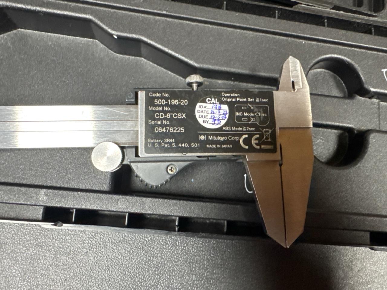 Mitutoyo Digital Caliper, Mod. CD-6 inches CSX, S/N 06476225 (Subject to confirmation. The winner will be determined based on the sum of bids on lots 2 to 64 vs bid on bulk lot 1)