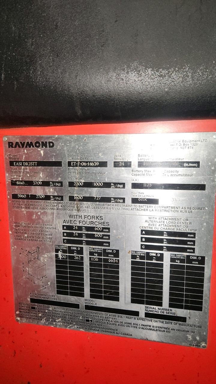Raymond Stand Up Double Reach forklift, mod. EASI-DR25TT, ser. ET-F-06-14639, 24V., 2500 lb cap, 187\" max lift height, N/A Hrs. Non-functional/for scrap, Battery has been removed