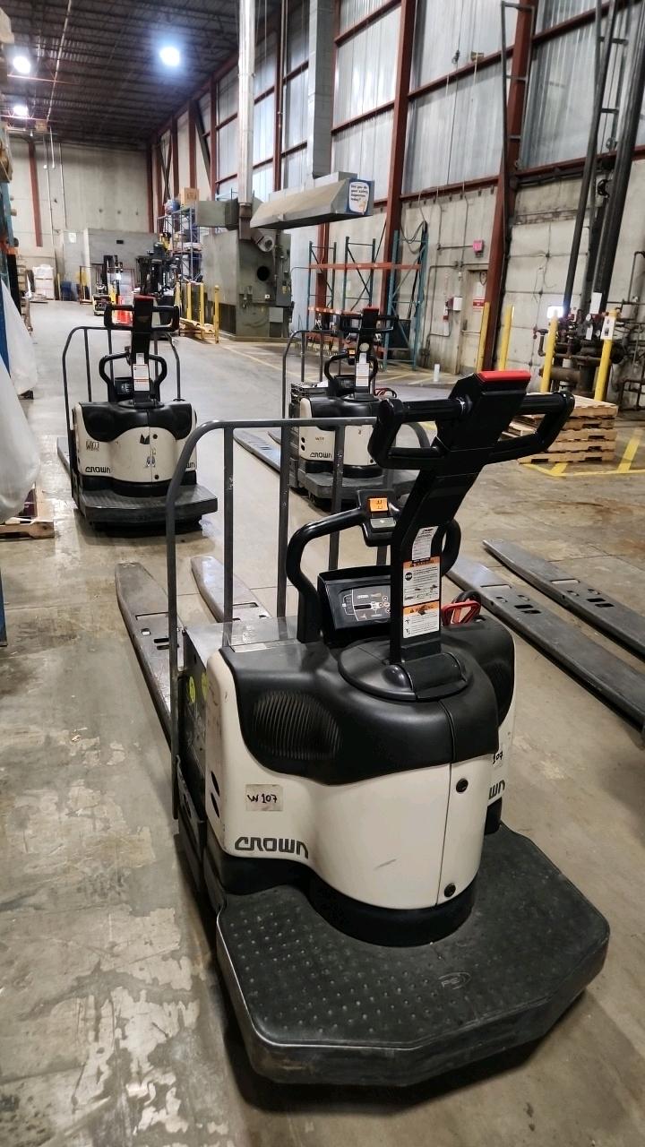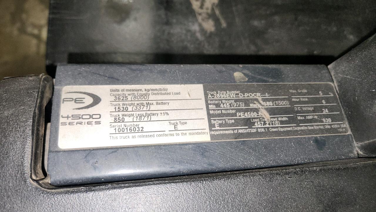 Crown Electric Rider Pallet Jack, mod. PE-4500-80, ser. 10016032, 24 V., 8000 lb @ 24 inches load centre, extra long forks 27\" W x 93\" L, 3170 Hrs.
