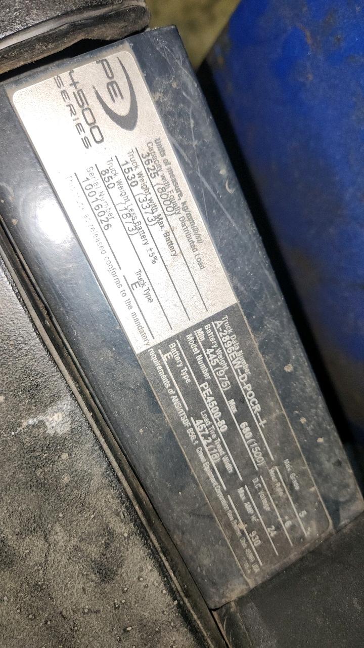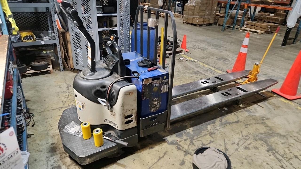 Crown Electric Rider Pallet Jack, mod. PE-4500-80, ser. 10016026+, 24 V., 8000 lb @ 24 inches load centre, extra long forks 27\" W x 93\" L, 4565 Hrs. under repair