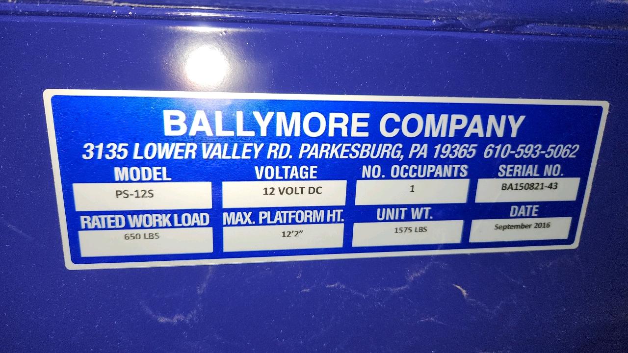 Ballymore telescopic man lift, mod. PS-125, ser. BA150821-43, 650 lb cap., 12 ft. platform height