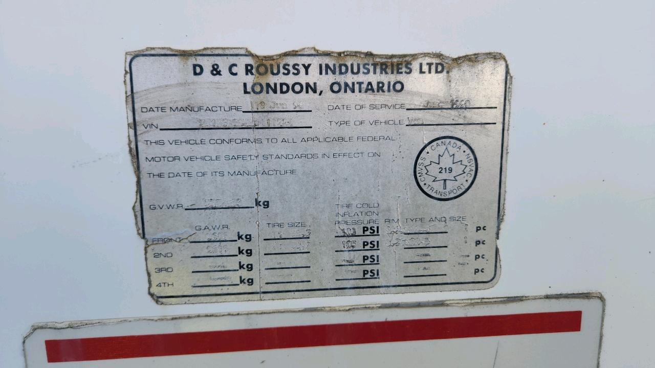 Roussy Dry Van Trailer, 53 feet, T/A, Mod. N/A, VIN N/A, Roll up door, (1990) Storage