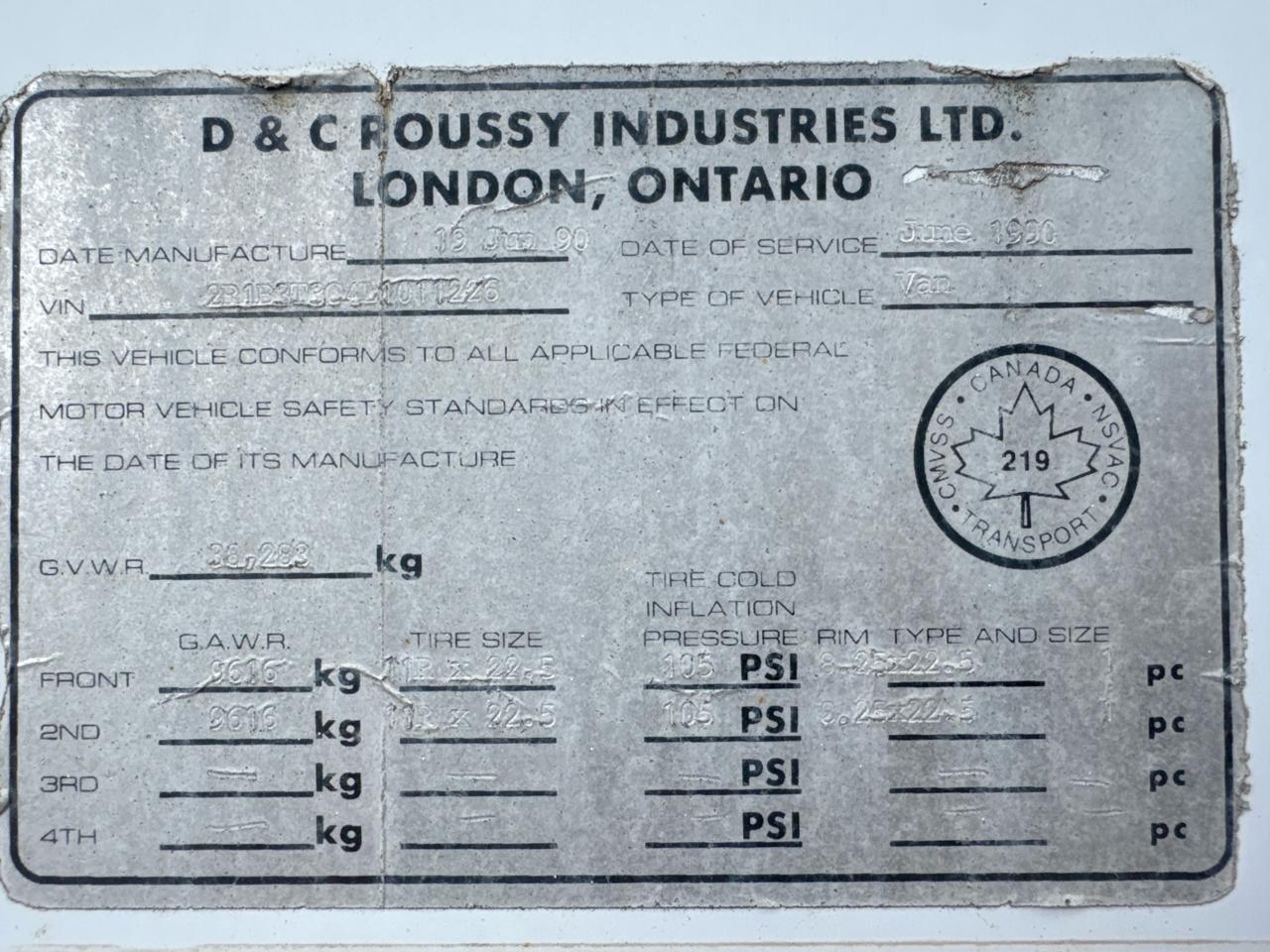 Roussy Dry Van Trailer, 53 feet, T/A, Mod. VAN, VIN 2R1B3T3C4L1011226, Roll up door (1990)