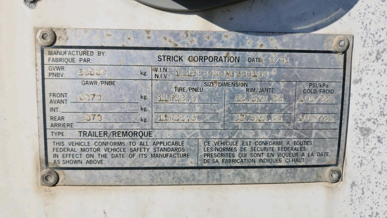 Strick Dry Van Trailer, 48 feet, T/A, Mod. N/A, VIN. 1S12E8488ND339169, Roll up door, (1991), Storage