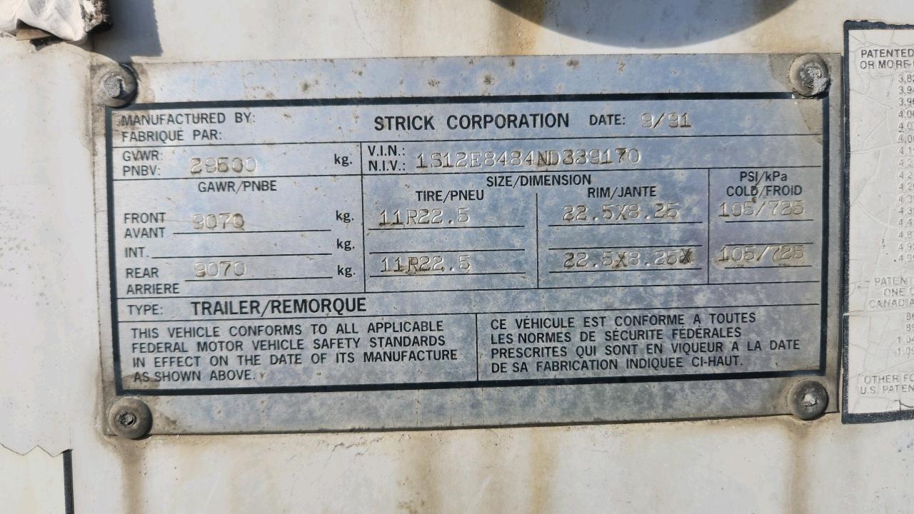 Strick Dry Van Trailer, 48 feet, T/A, Mod. N/A, VIN. 1S12E8484ND339170, Roll up door, (1991), Storage