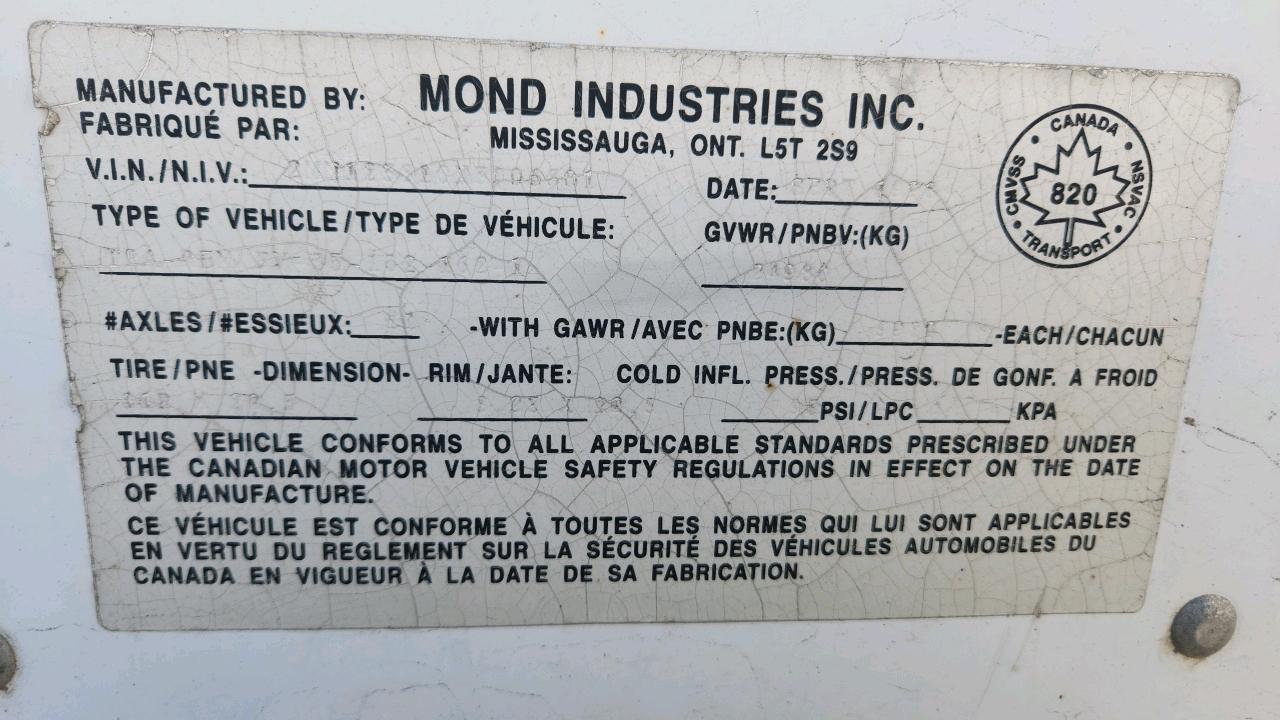 Mond Dry Van Trailer, 35 feet, S/A, Mod. FV-35-102-162-1, Roll up door, (1998), Delivery