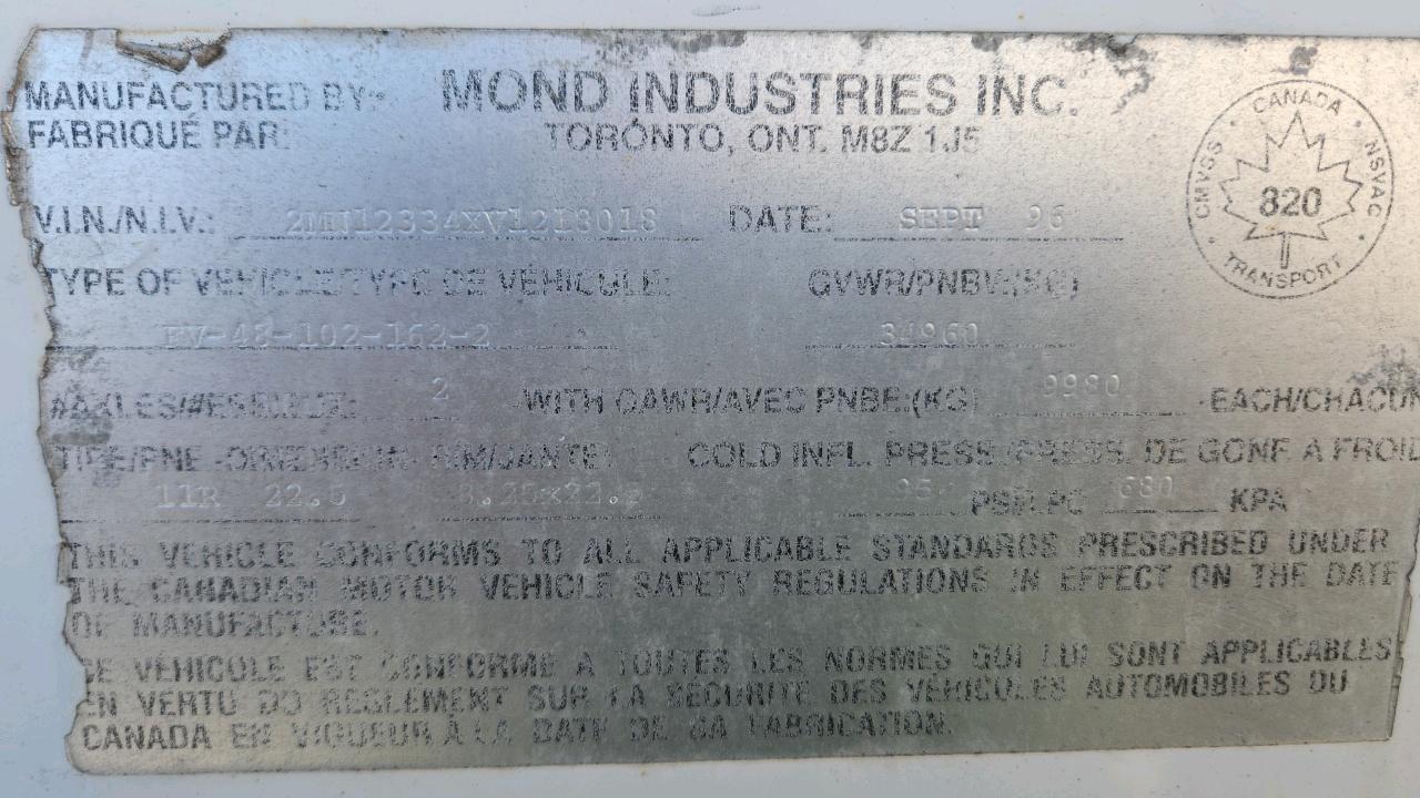 Mond Dry Van Trailer, 48 feet, T/A, Mod.FV-48-102-162-2, Roll up door, (1996), Delivery